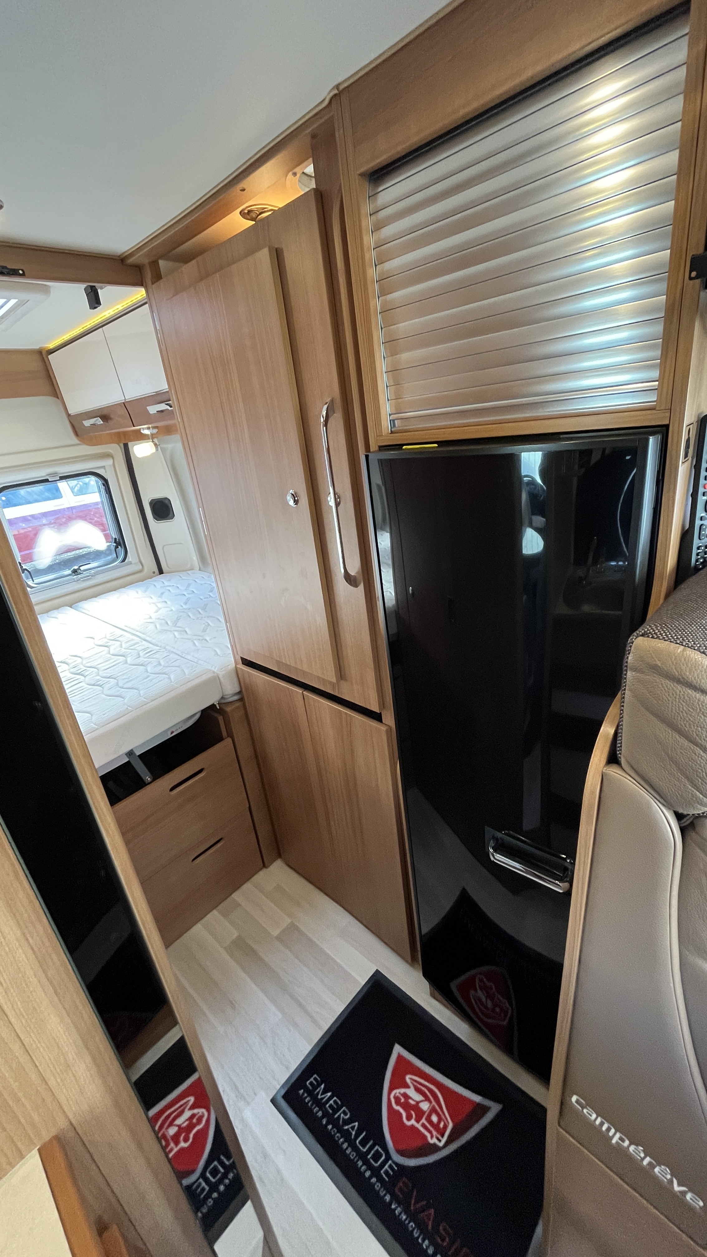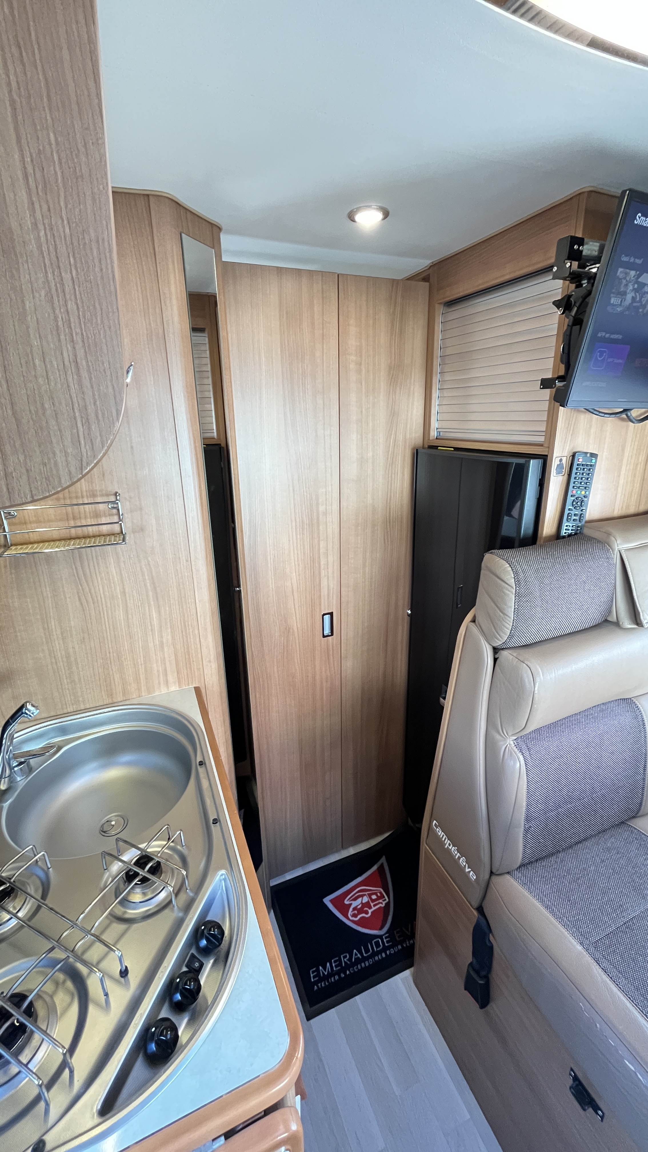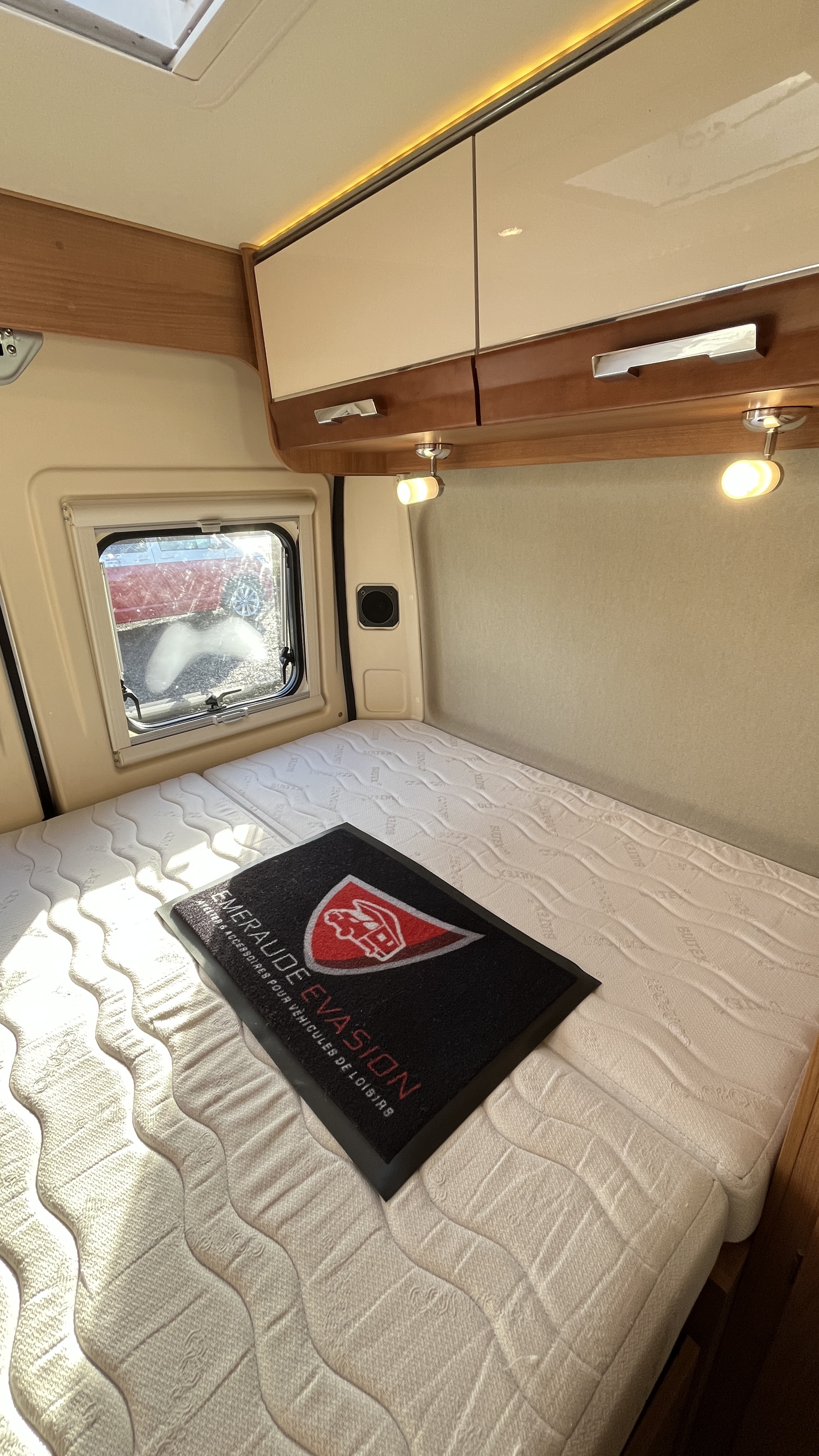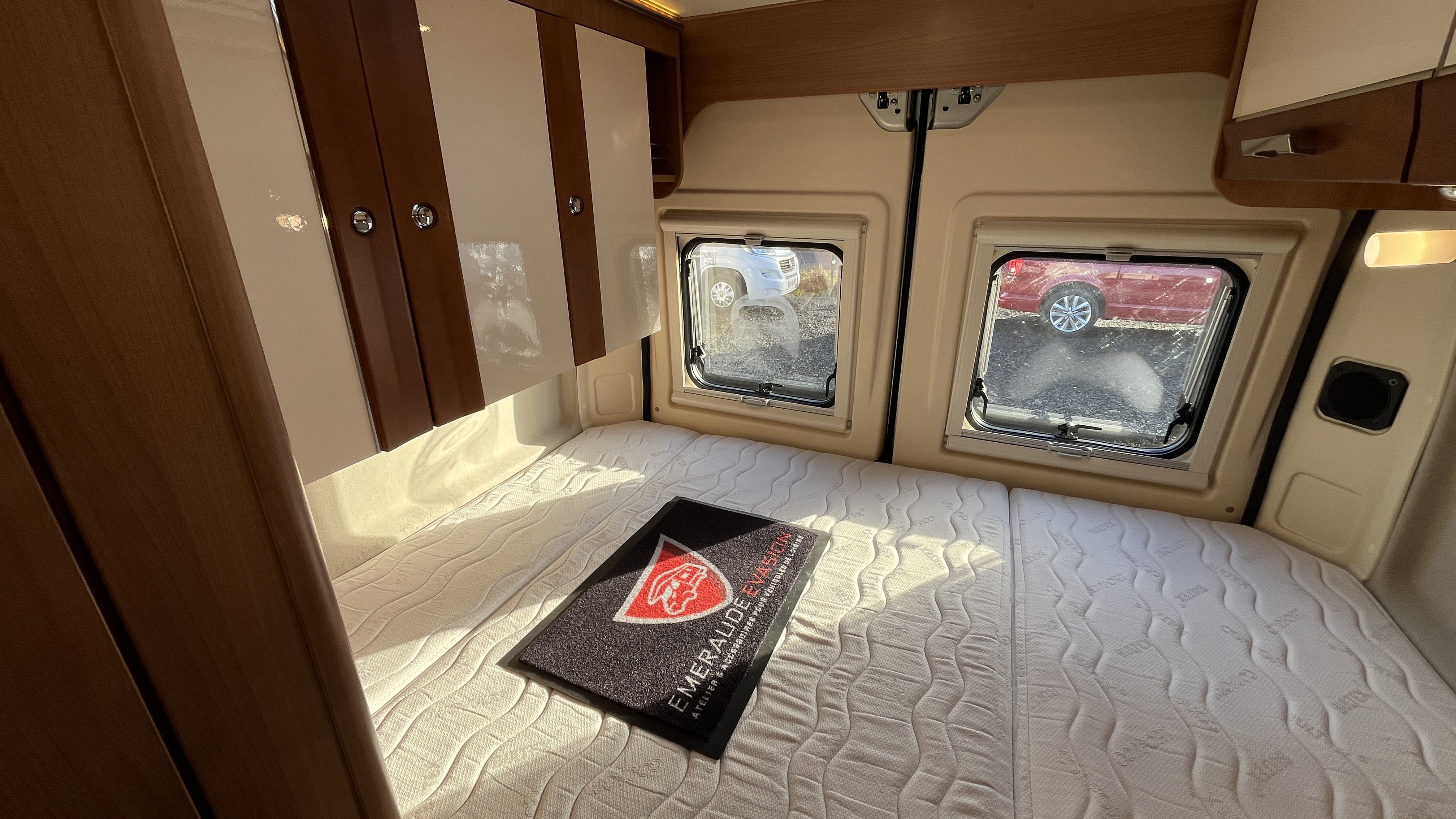 IntérieurSellerie mixte simili/tissu brunFrigoAutomatiqueFrigoGrandÉclairage ledsRéseau telePrise USBRideaux plissesLit principalLit TransversalDimensions192x132 cmLit secondaireLit dinetteDimensions185x100 cmCaméra de reculeRégulateur de vitesseCombi chauffe-eau / chauffage gaz