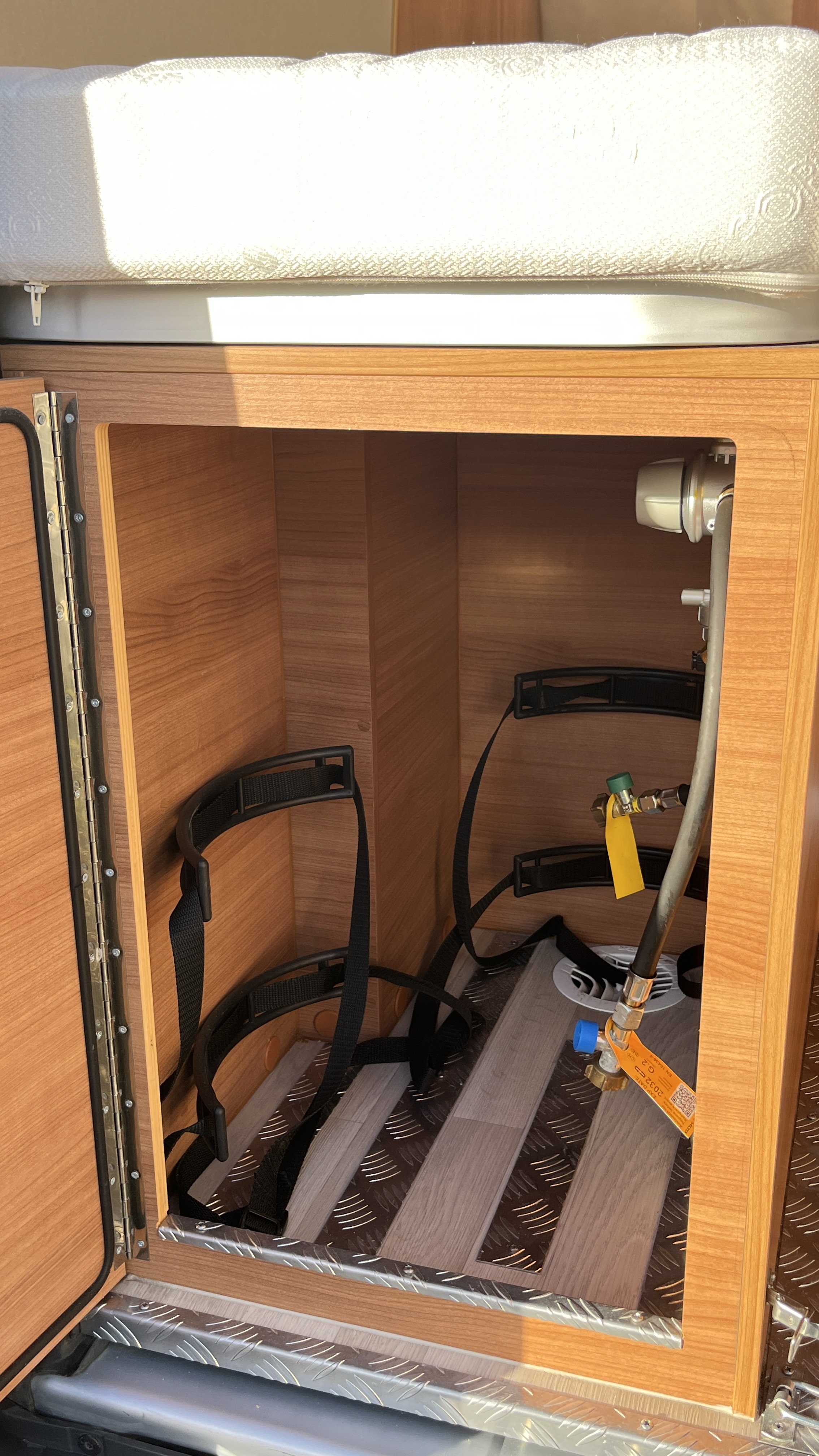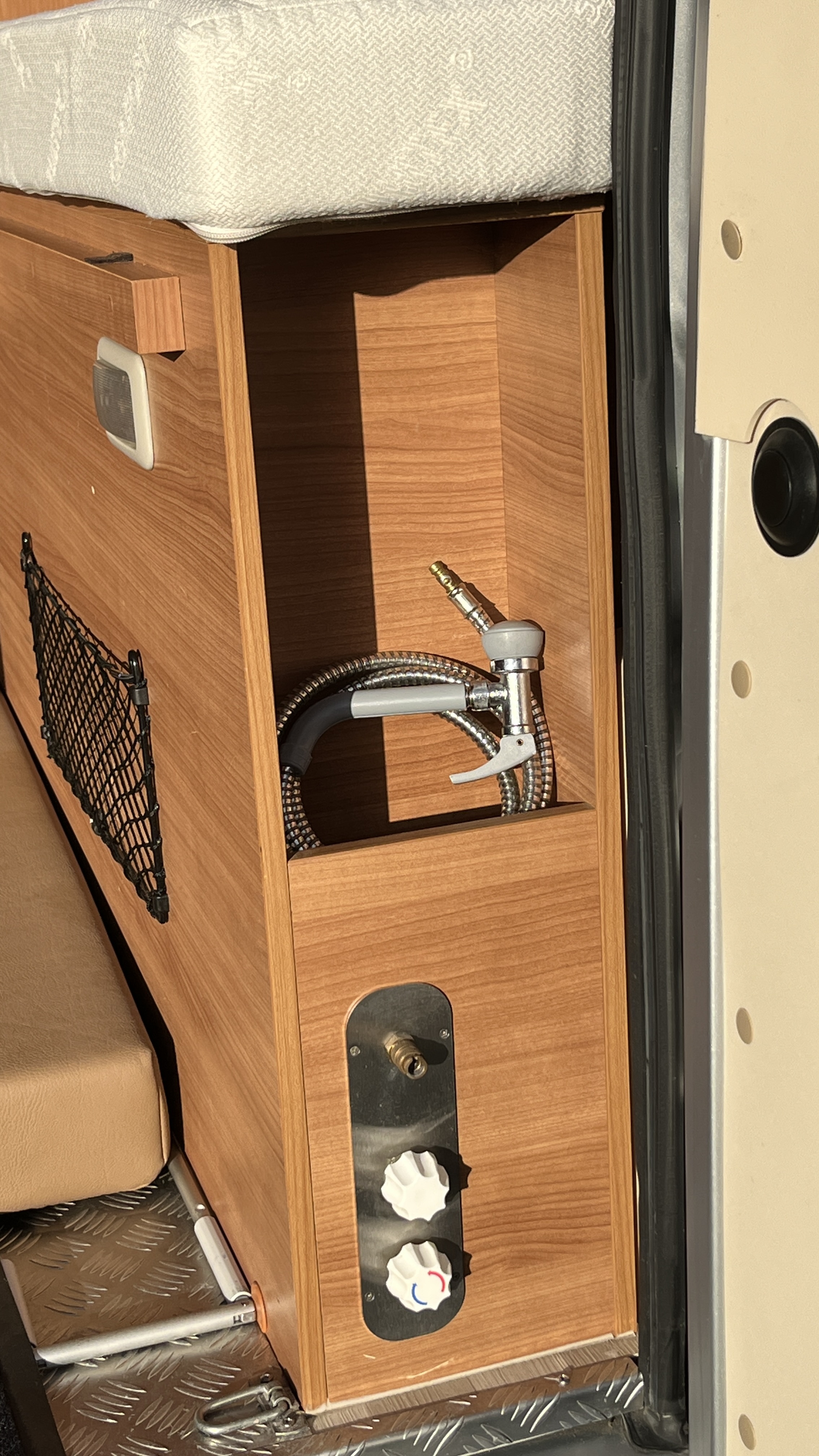 Au retour de plage, vous pourrez rincer vos pieds ou votre matériel de sport grâce à la douchette extérieure accessible de la vaste soute, elle-même protégée par un revêtement de sol en métal antidérapant.