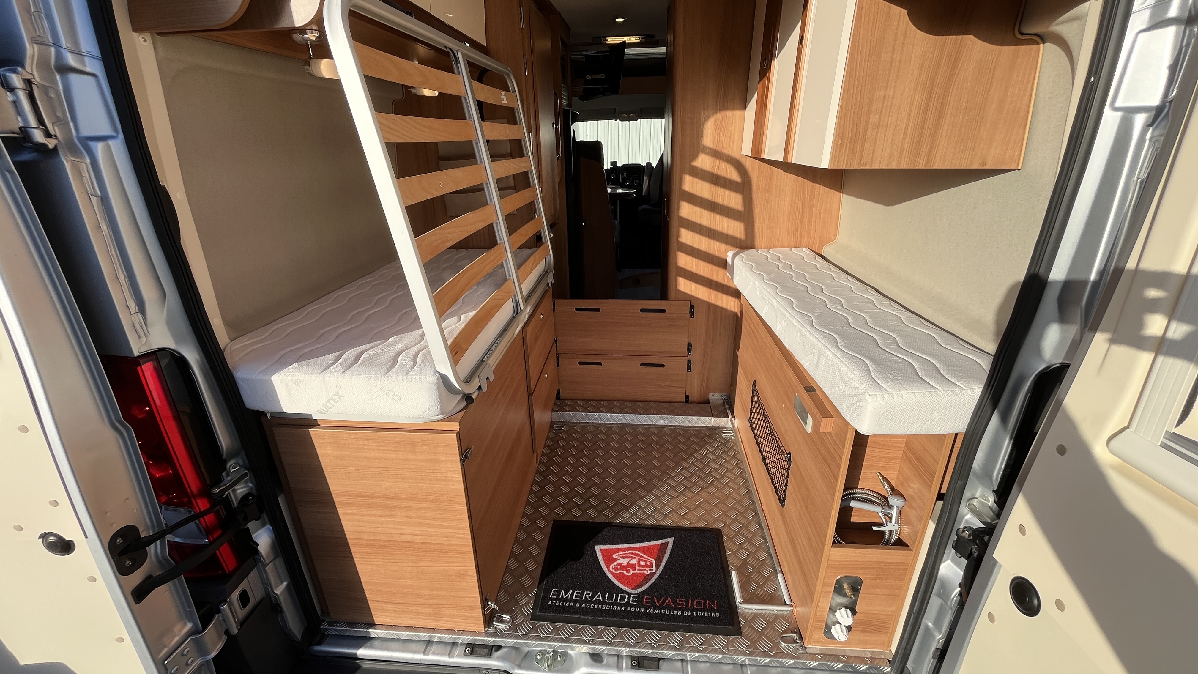 Au retour de plage, vous pourrez rincez vos pieds ou votre matériel de sport grâce à la douchette extérieure. Sa cuisine équipé d’un grand frigo, d’un réchaud 3 feux et d’un évier inox, débouche sur un salon confortable Partez à la découverte de ses nombreuses autres fonctionnalités innovantes et laissez-vous embarquer pour un nouvel imaginaire.