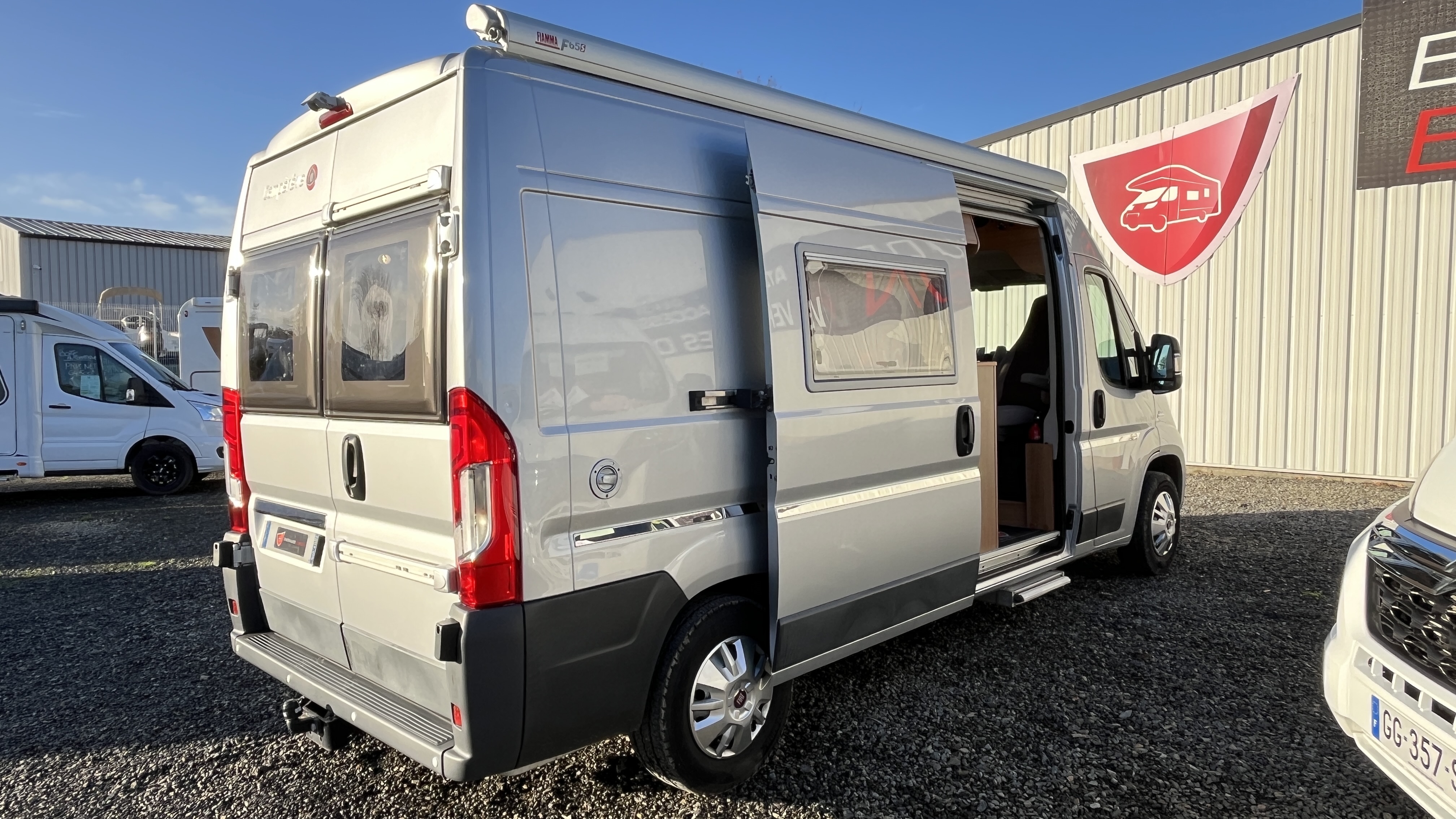 Couchage(s)3Motorisation2.3 L MultiJet 130 Ch (SANS ADBLUE) – 8 CVBoite de vitesseManuelleClimatisation cabineEau propre / eau usee110 / 100 LImplantation_cuisineDroiteDouche toilette séparéPorte ou rideau séparation chambreSchéma