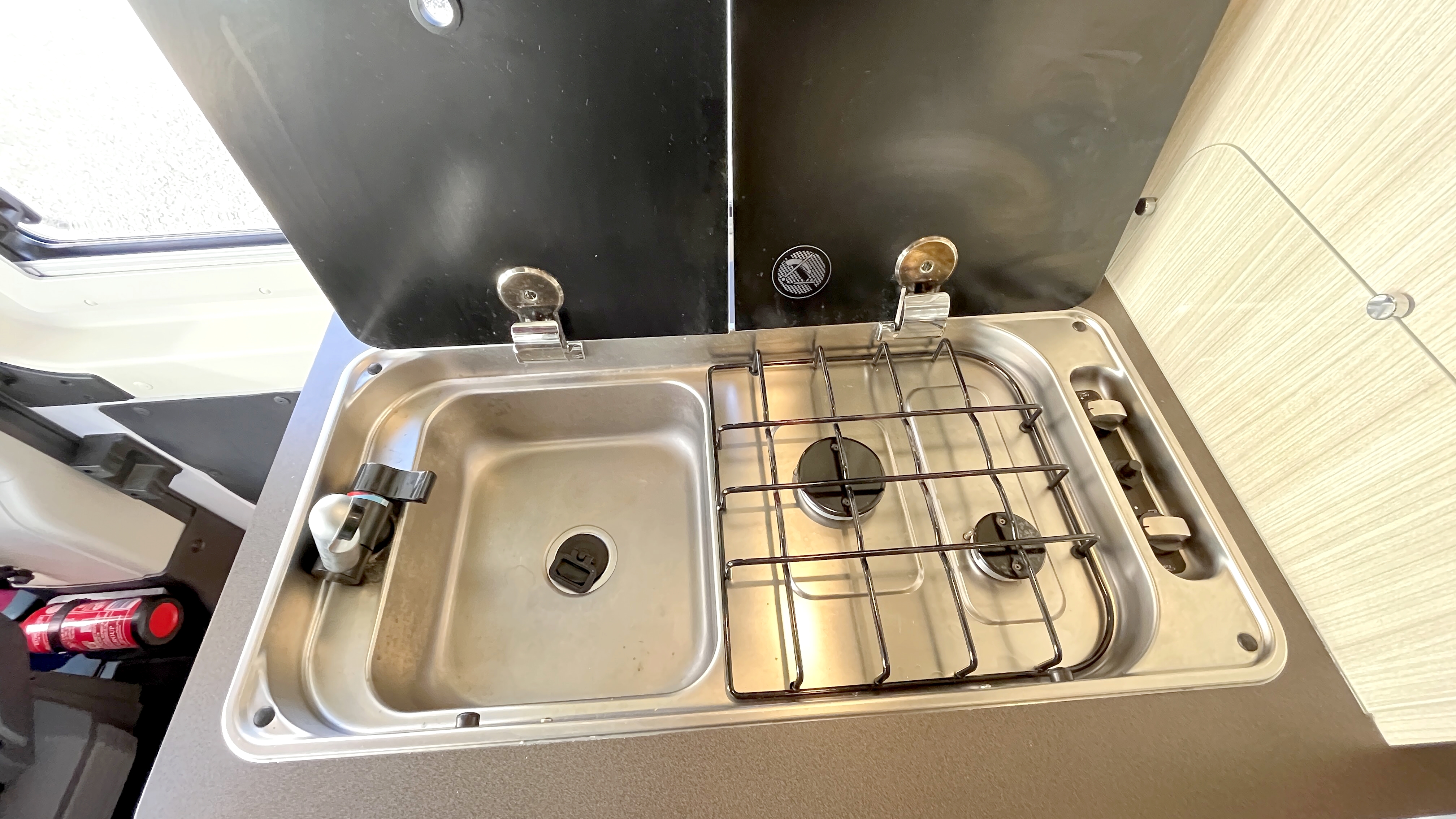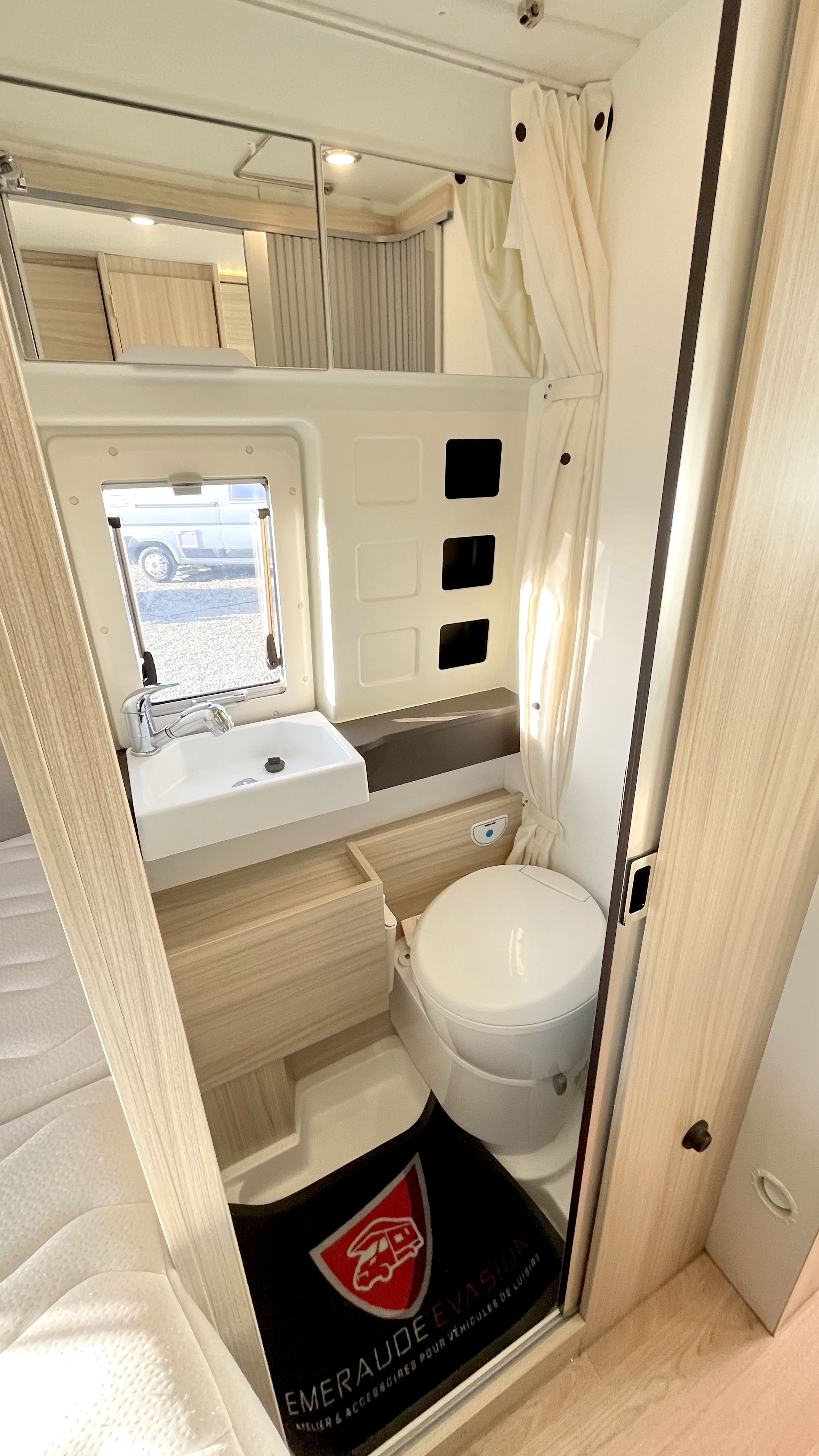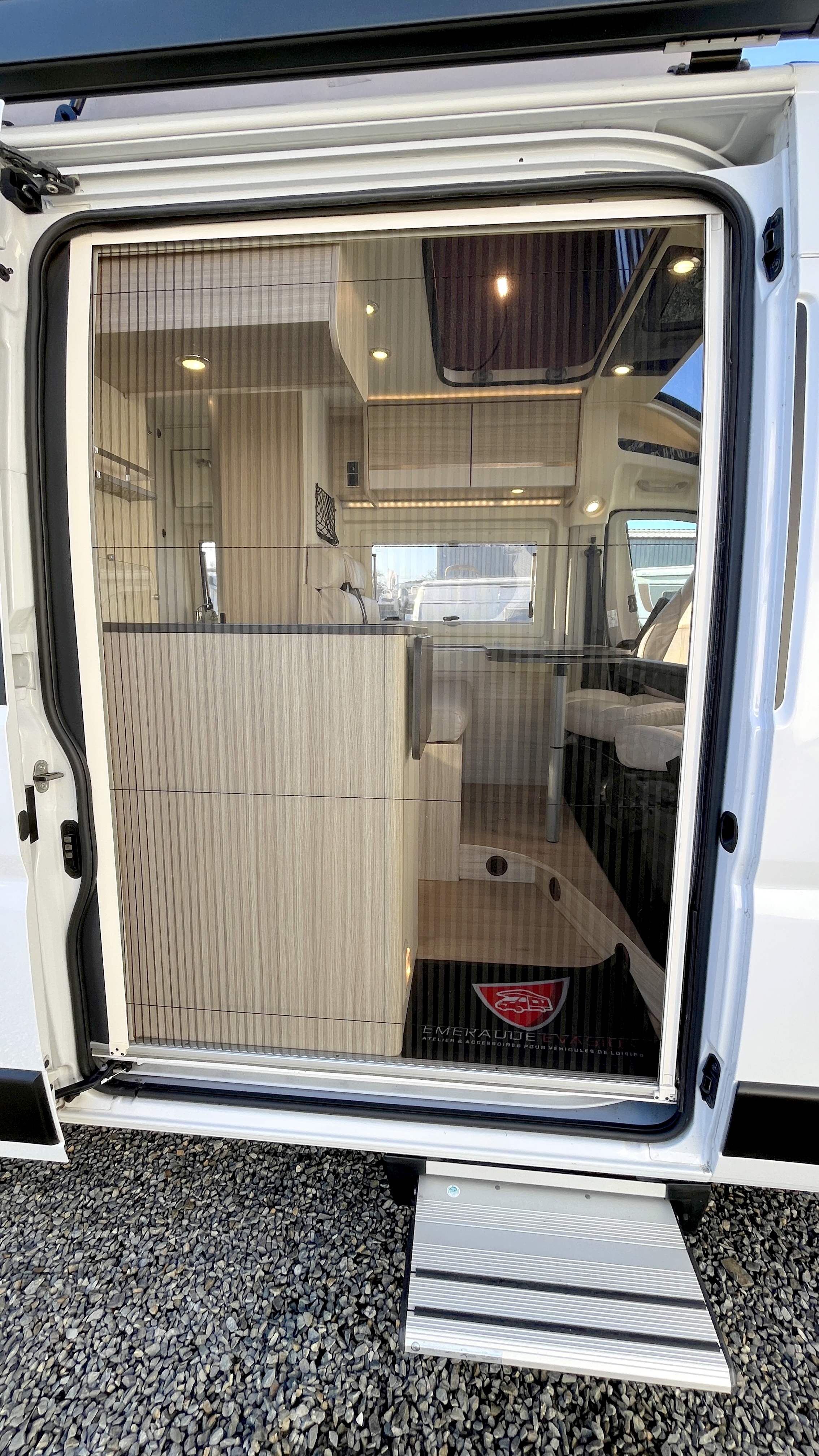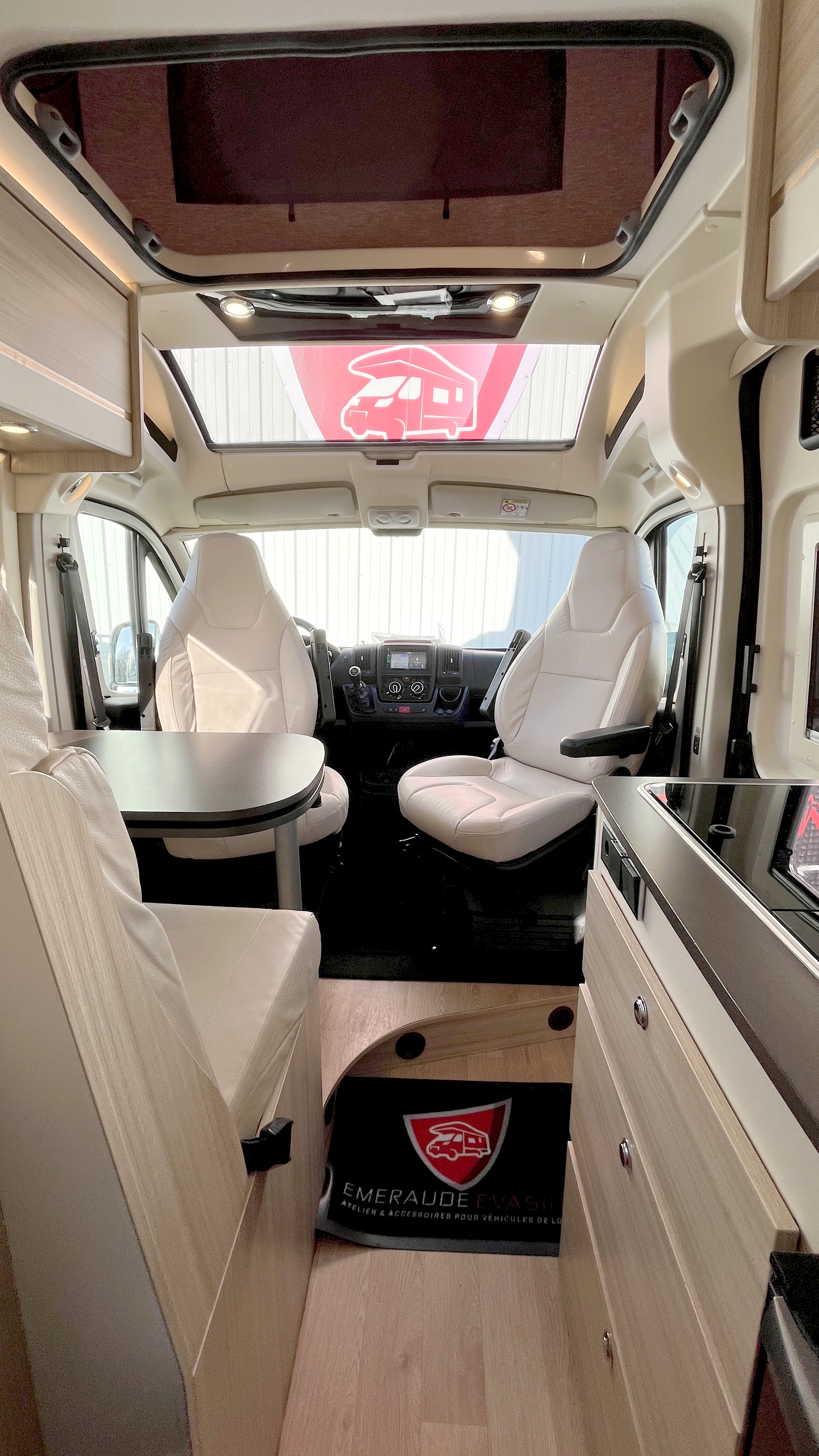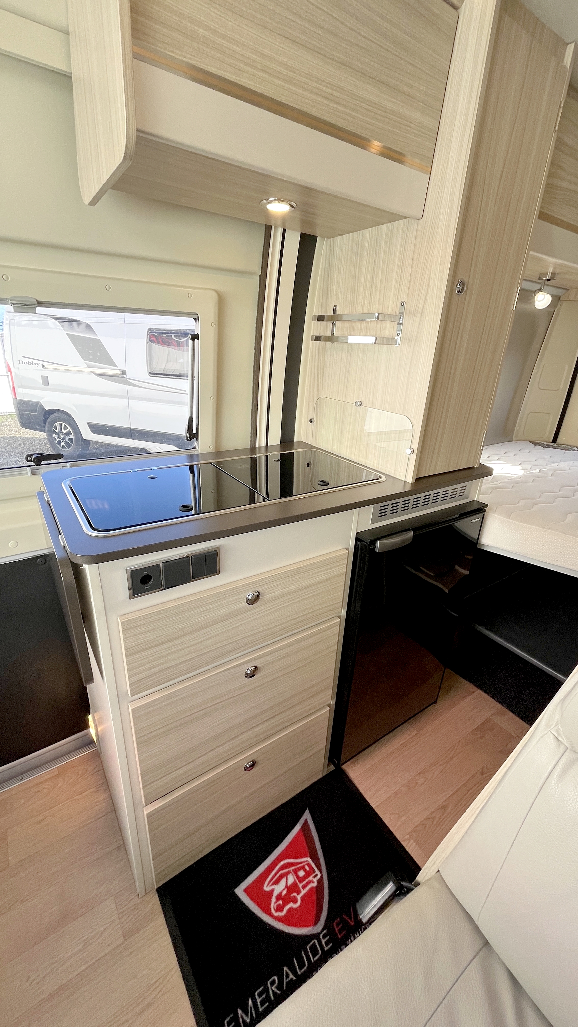 Il est un condensé de tout ce qui se fait de mieux en matière de fourgon aménagé compact. Il se compose d’un combiné cabinet de toilette avec douche intégrée. Grâce à sa porte coulissante et son demi-rideau qui ne recouvre que la partie mobilier, l’espace douche reste confortable à l’usage. Complétée par une fenêtre, vous permettant de vous doucher à l’extérieur. Sa cuisine équipée d’un frigo de 90L, d’un réchaud 2 feux et d’un évier inox, débouche sur un salon confortable baigné de lumière naturelle grâce à son skydôme en verre occultable. Cet intérieur cossu s’appréciera dans la durée grâce à ses 2 batteries de cellule couplées à un panneau solaire ultra plat.