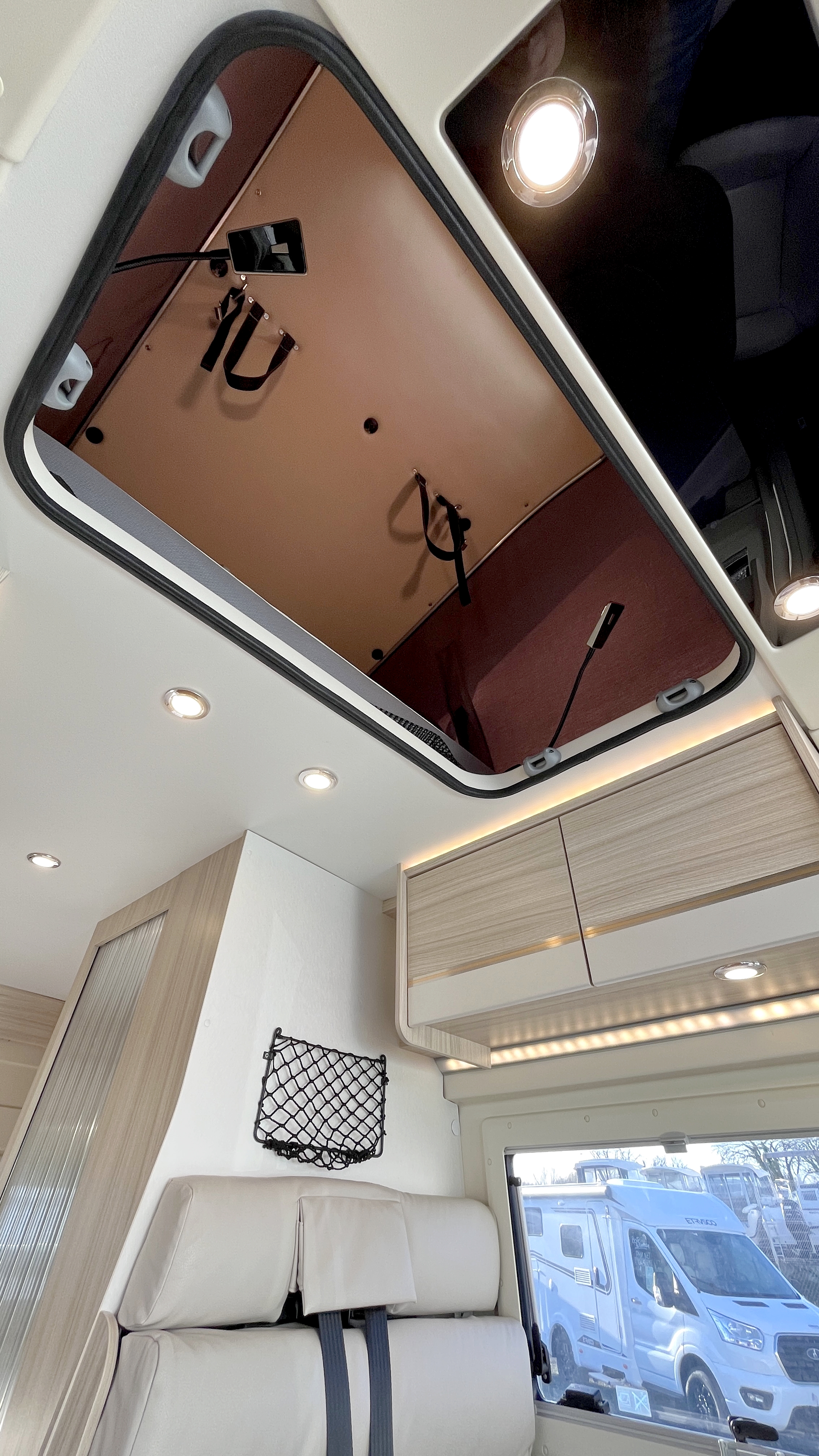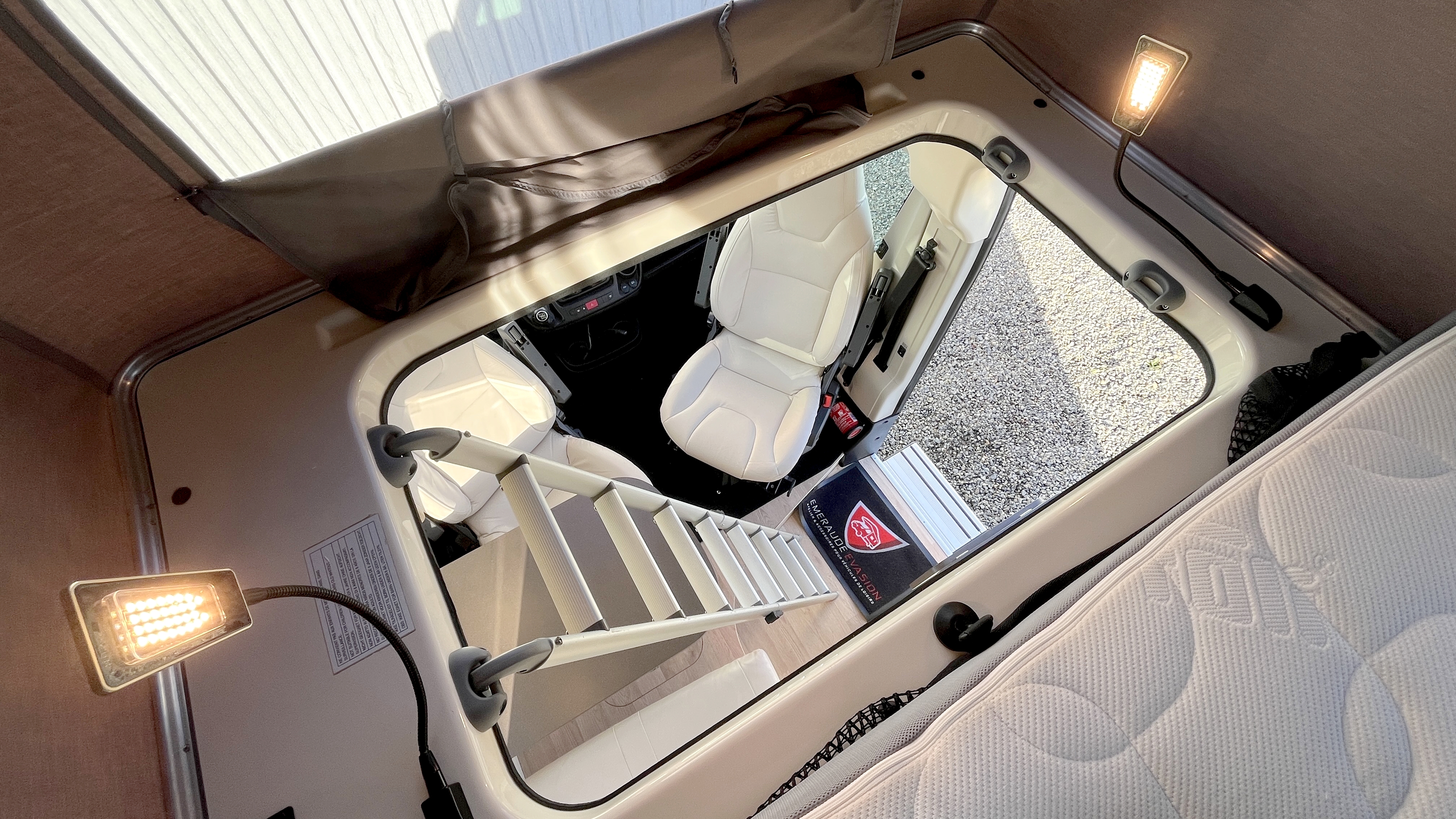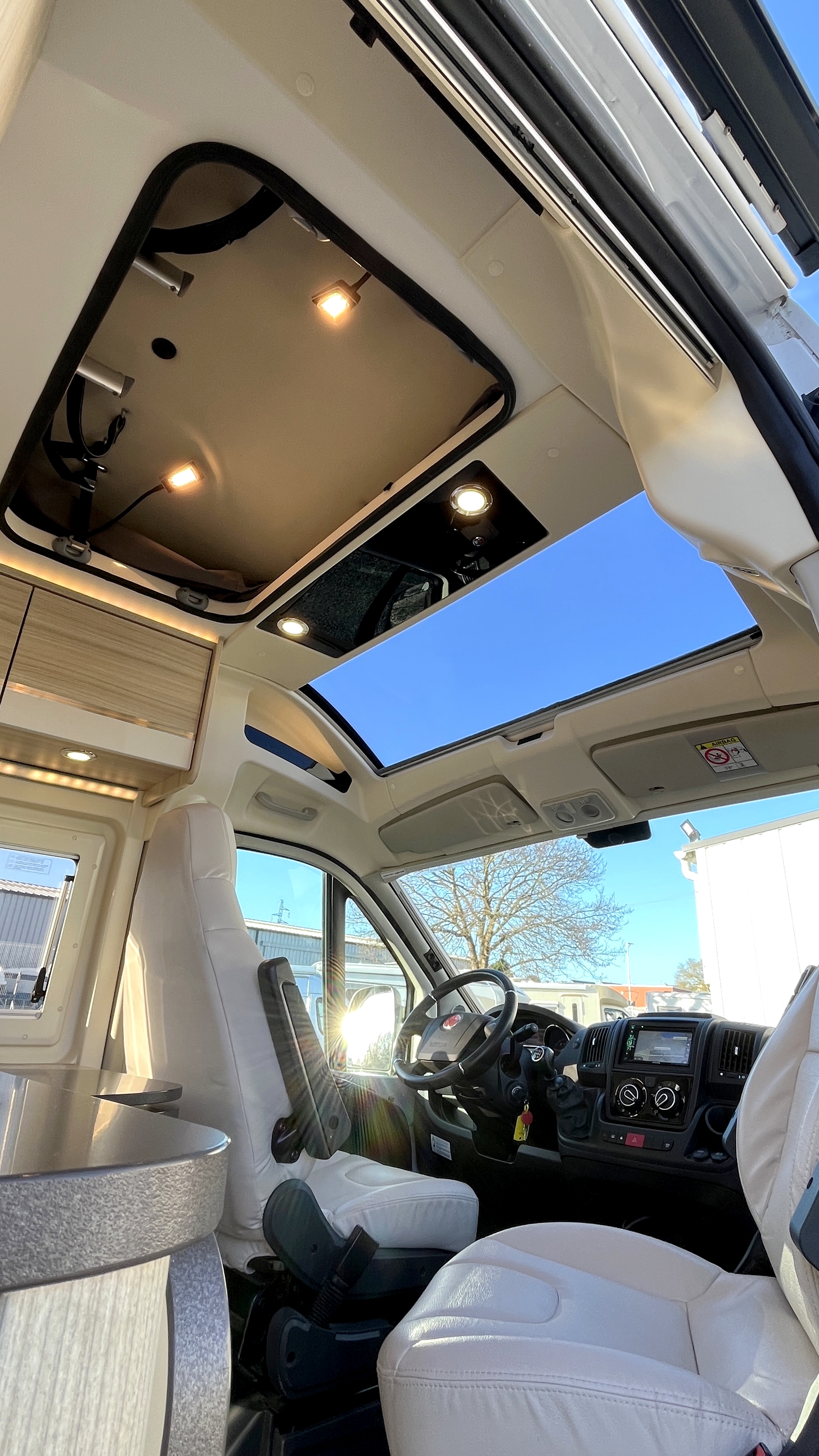 IntérieurAmbiance Arizona : Sellerie simili Beige - Mobilier NaturalFrigoPetitÉclairage ledsPrise USBRideaux plissesLit principalLit TransversalDimensions195 x 132/108 cmLit secondaireLit de pavillonDimensions200 x 130 cmCaméra de reculeGPSRégulateur de vitesseCombi chauffe-eau / chauffage gasoil
