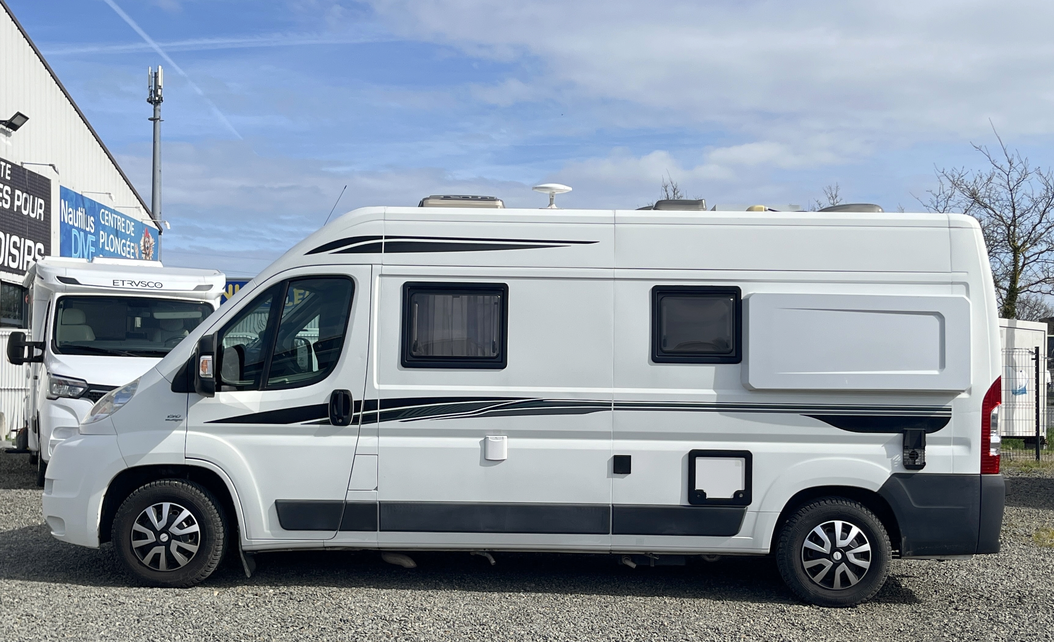 Couchage(s)3Motorisation2.3L MultiJet 130ch (SANS AdBlue) - 8CVBoite de vitesseManuelleClimatisation cabineEau propre / eau usee110/100 LImplantation_cuisineDroitePorte ou rideau séparation chambreSchéma