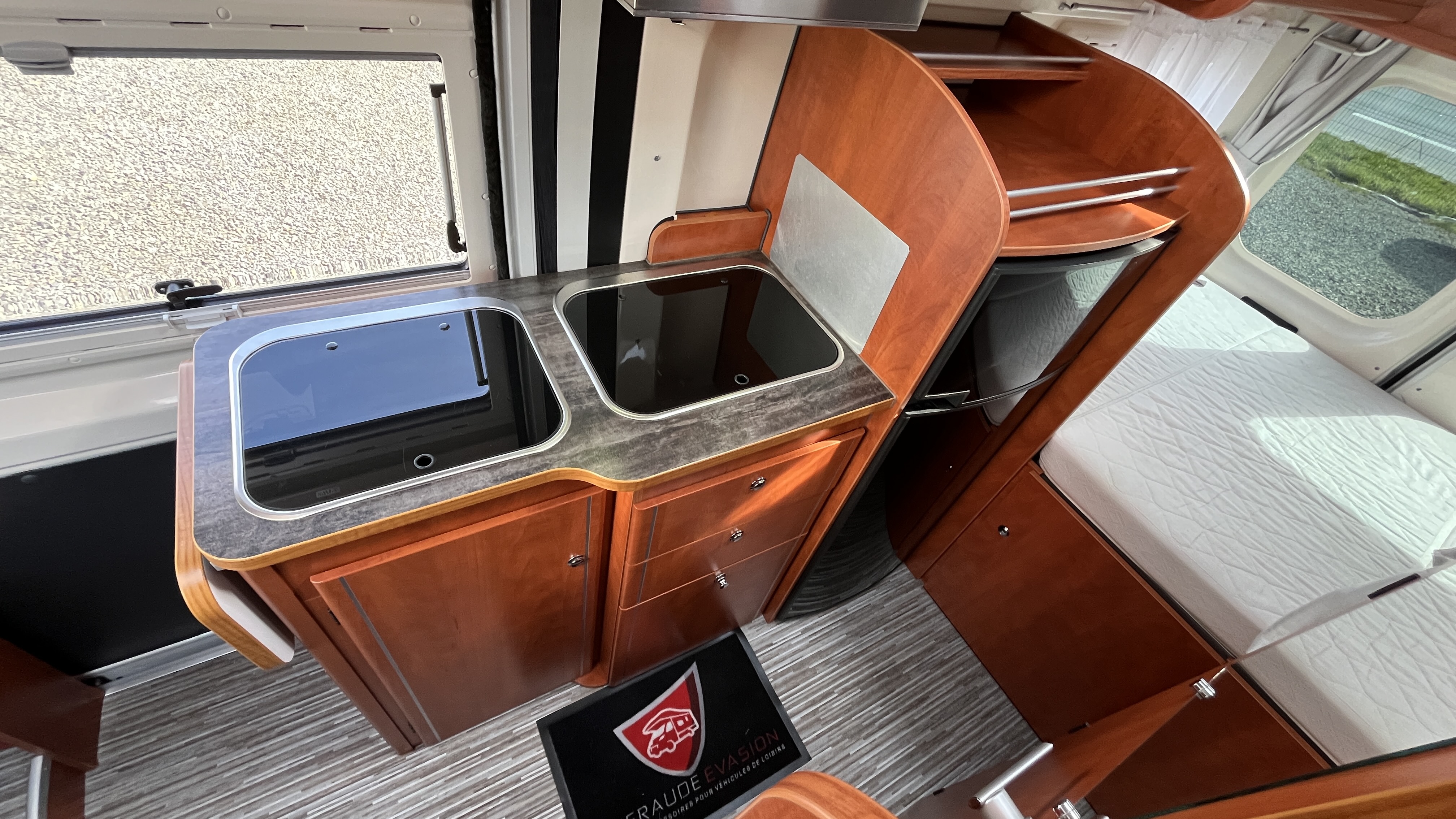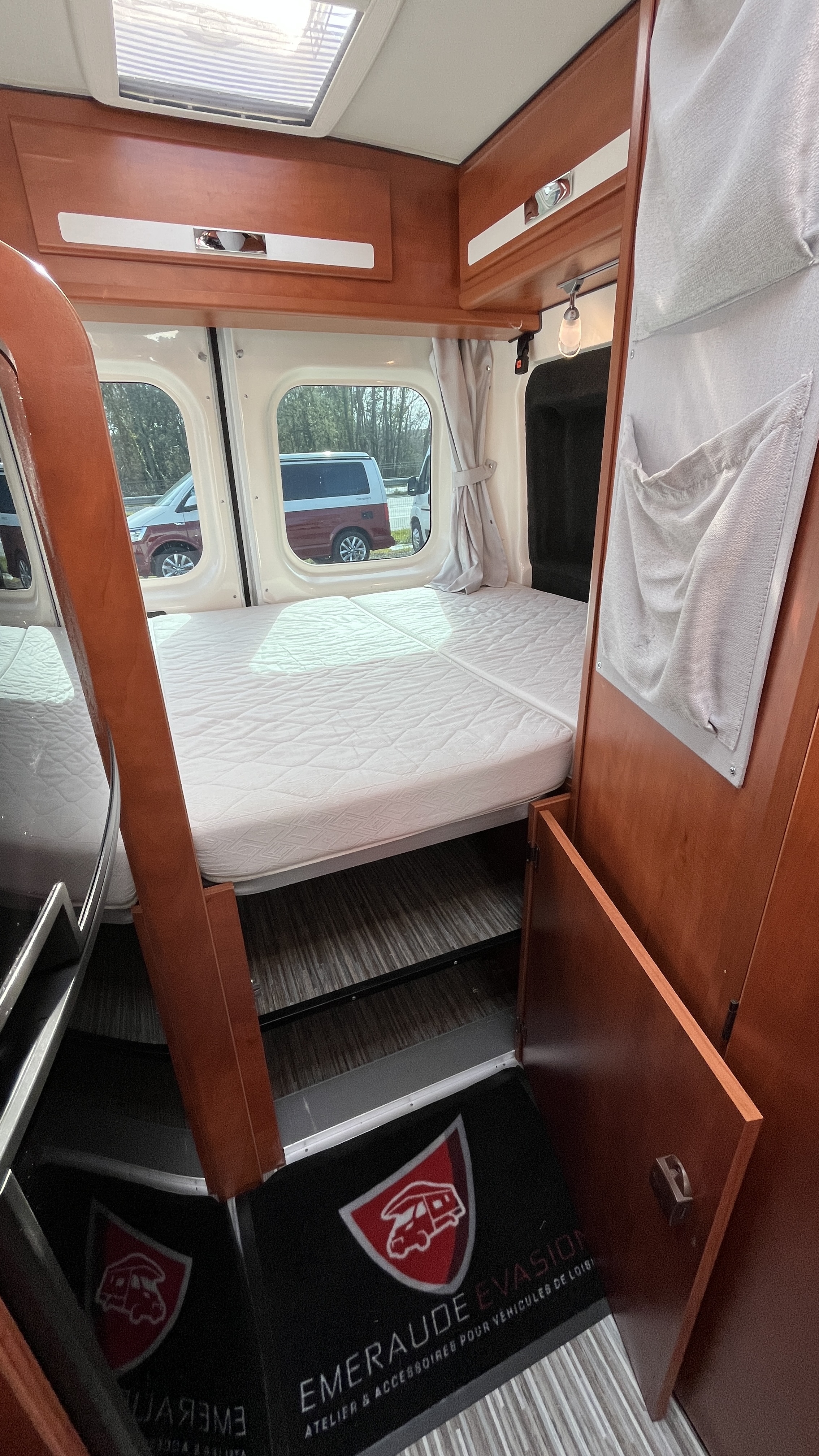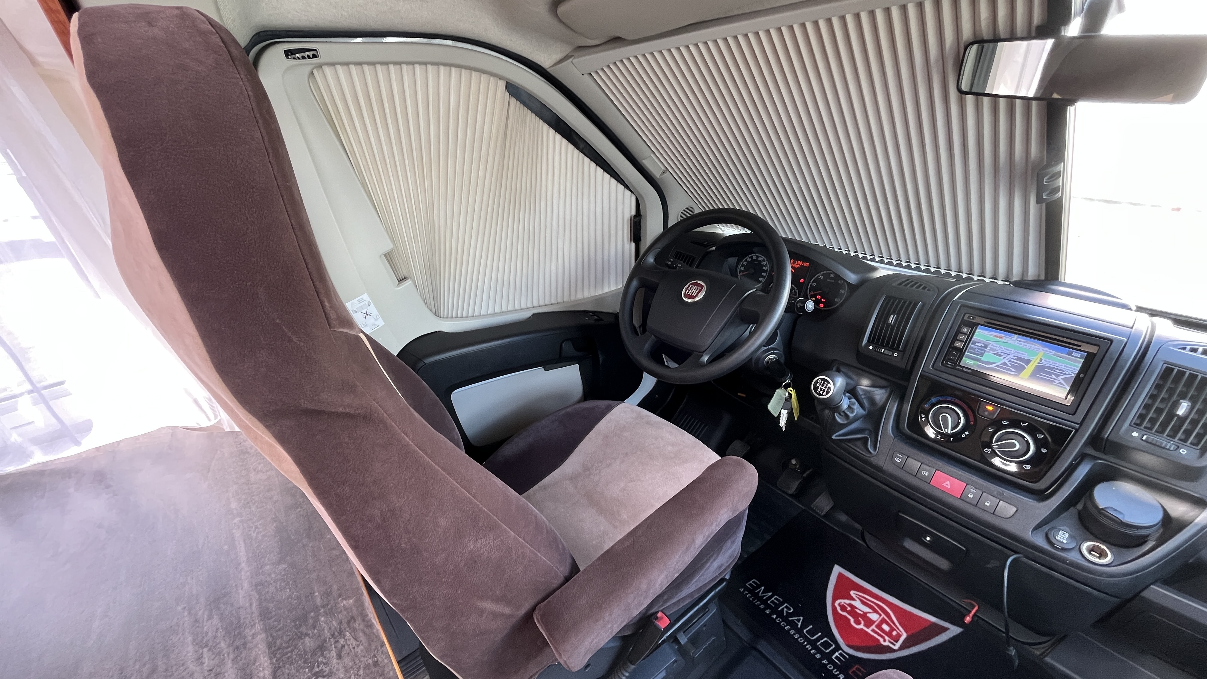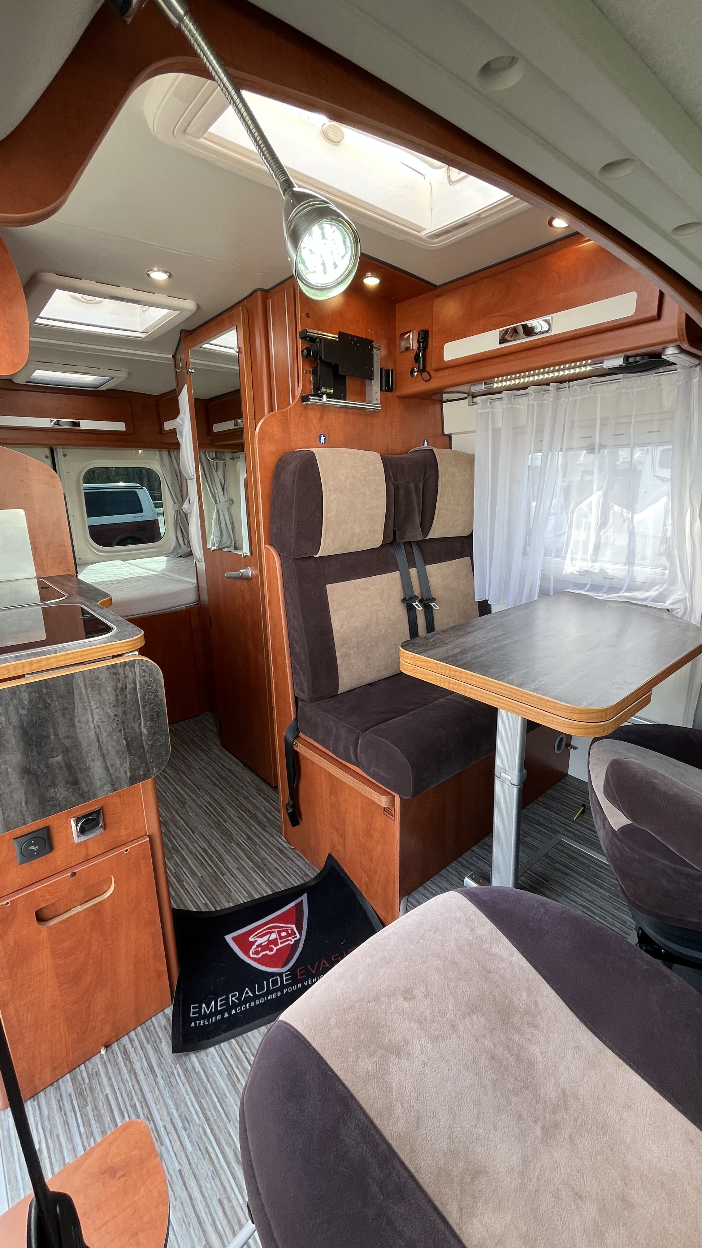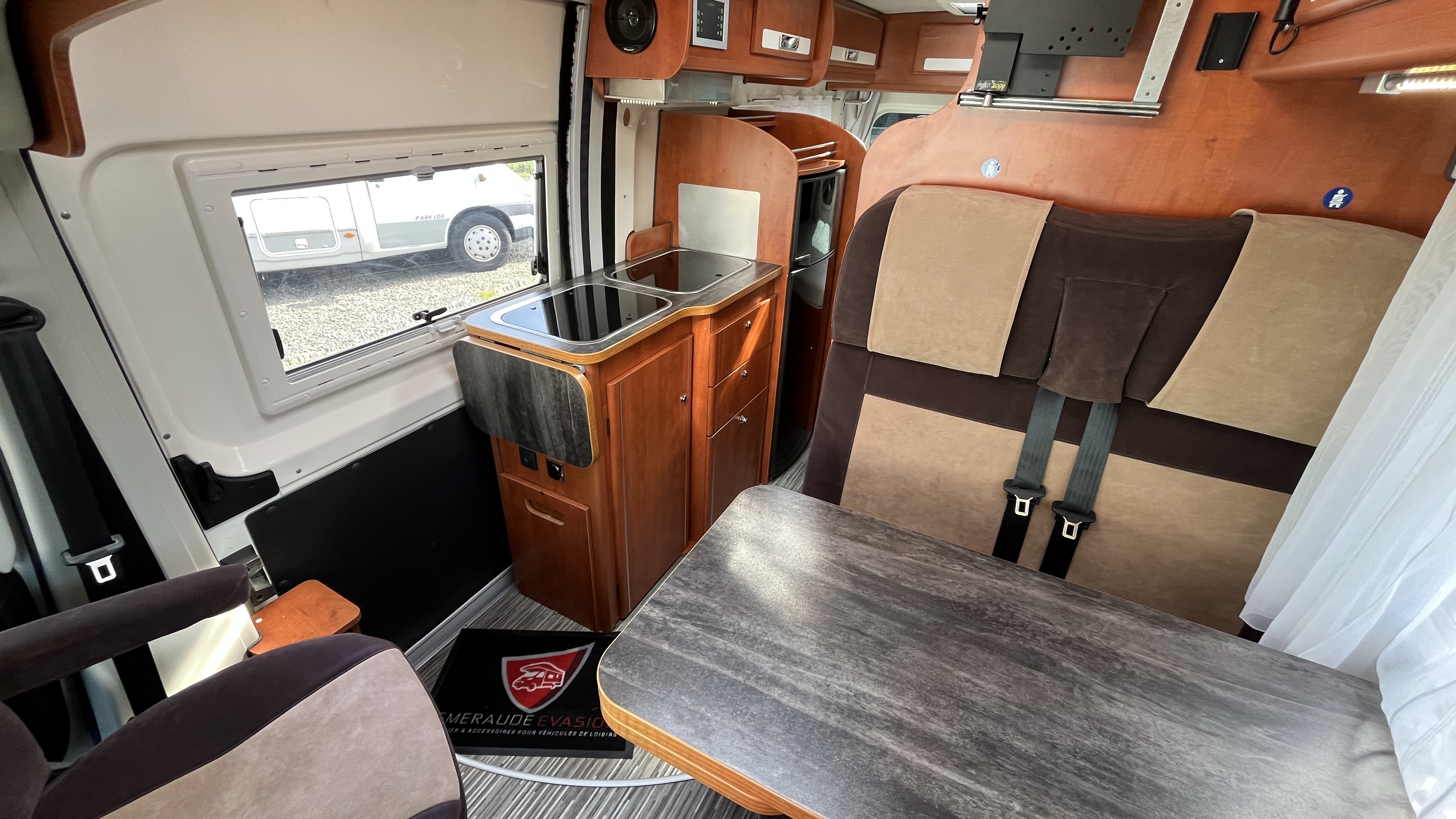 IntérieurRevêtement suédine Brun/beigeFrigoAutomatiqueFrigoGrandÉclairage ledsHotteType d'antenneHertziennePrise USBRideaux plissesLit principalLit TransversalDimensions205x134 cmLit secondaireLit dinetteDimensions187x102 cmCaméra de reculeGPSRégulateur de vitesseCombi chauffe-eau / chauffage gasoil