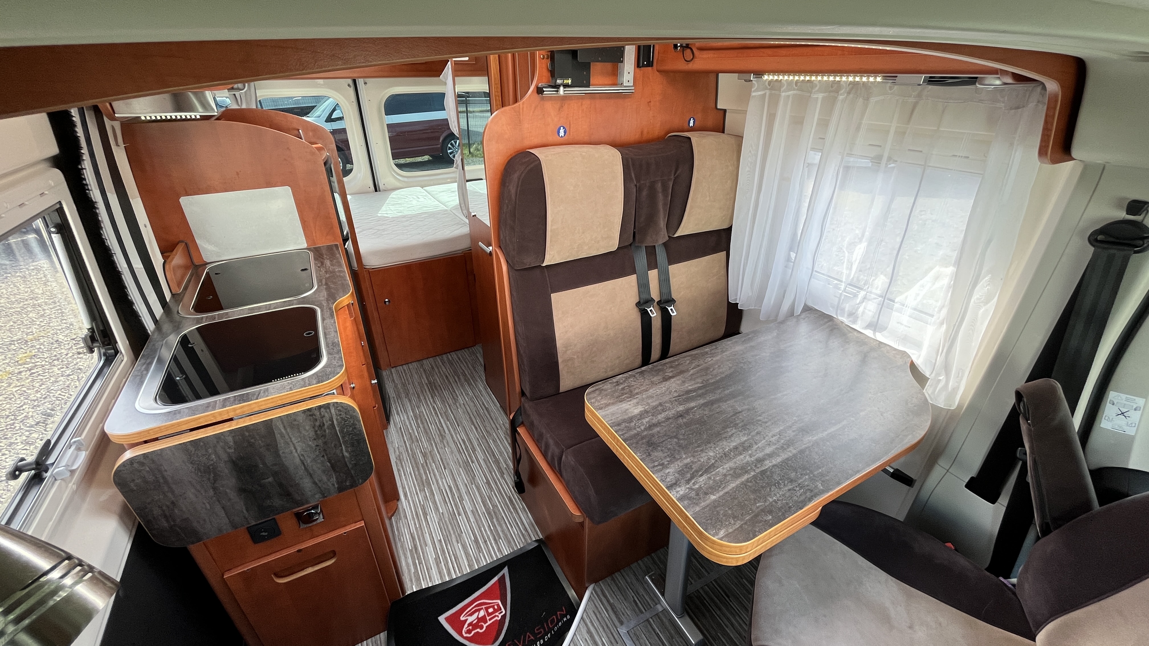 En complément du lit principal, la dînette peut se transformer en couchage d’appoint, portant la capacité totale à 3 couchages.