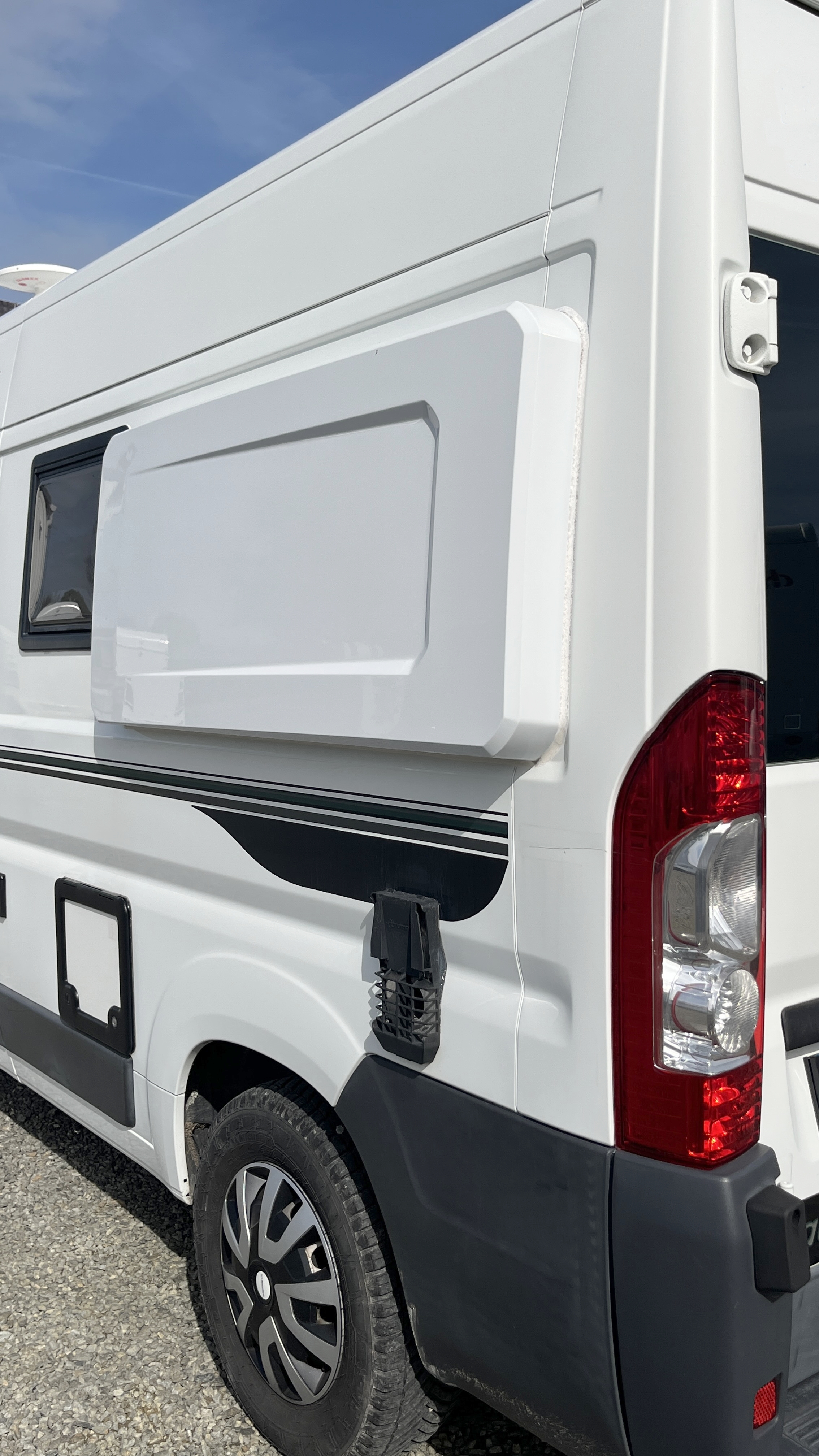 Après une journée à la plage ou une activité sportive, vous pourrez profiter de la douchette extérieure, accessible depuis la grande soute. Celle-ci est équipée d’une étagère, pratique pour transporter du matériel sur 2 niveaux.