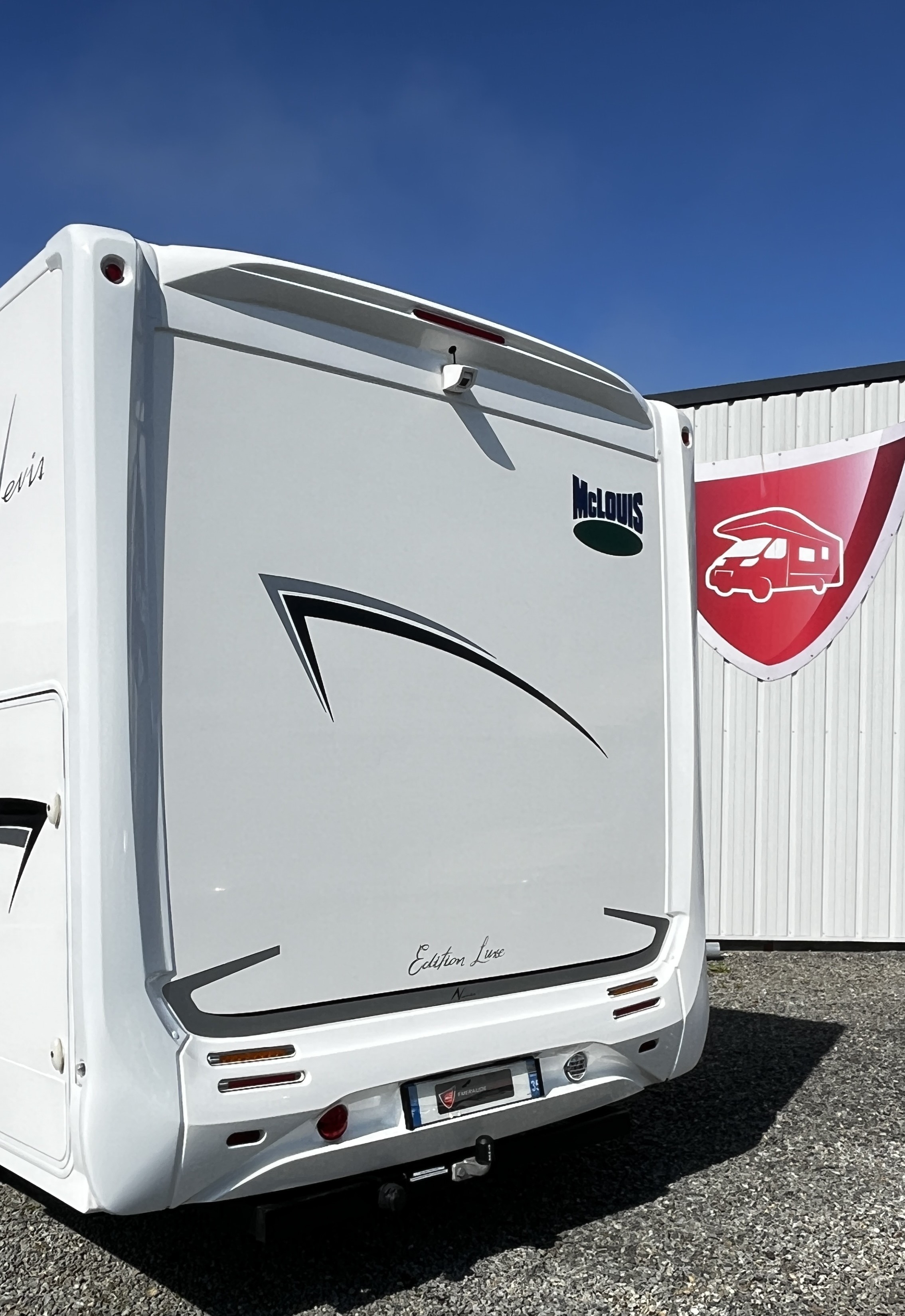 L’intégral Mc LOUIS Nevis 880 G Edition Luxe propose une implantation lit central réglable en hauteur avec salle de bain transversale.