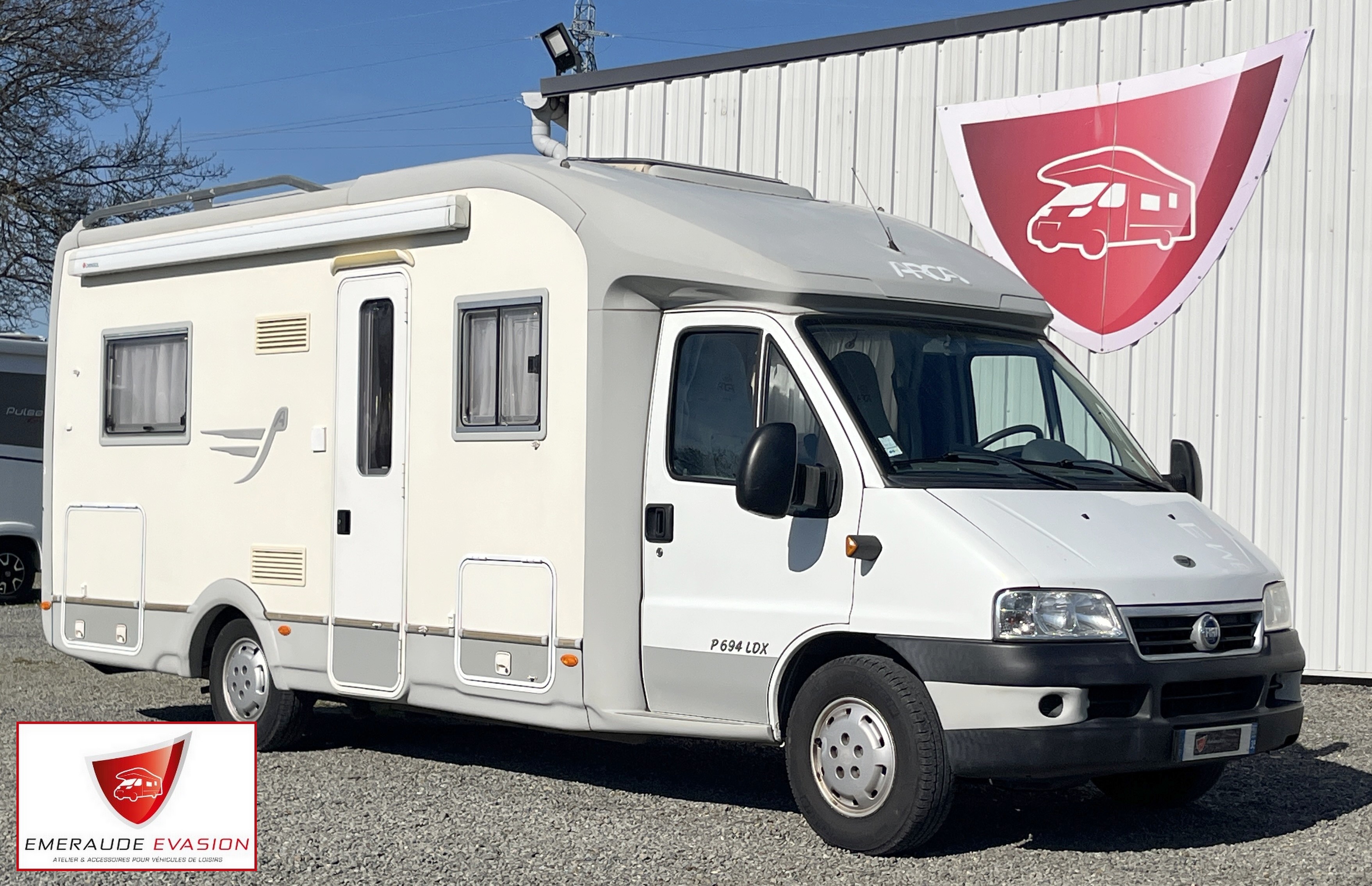 Le profilé P 694 LDX du constructeur italien Arca, marque historique du groupe Trigano, est un camping-car conçu pour les voyages en famille alliant raffinement, confort et qualité de fabrication reconnue.