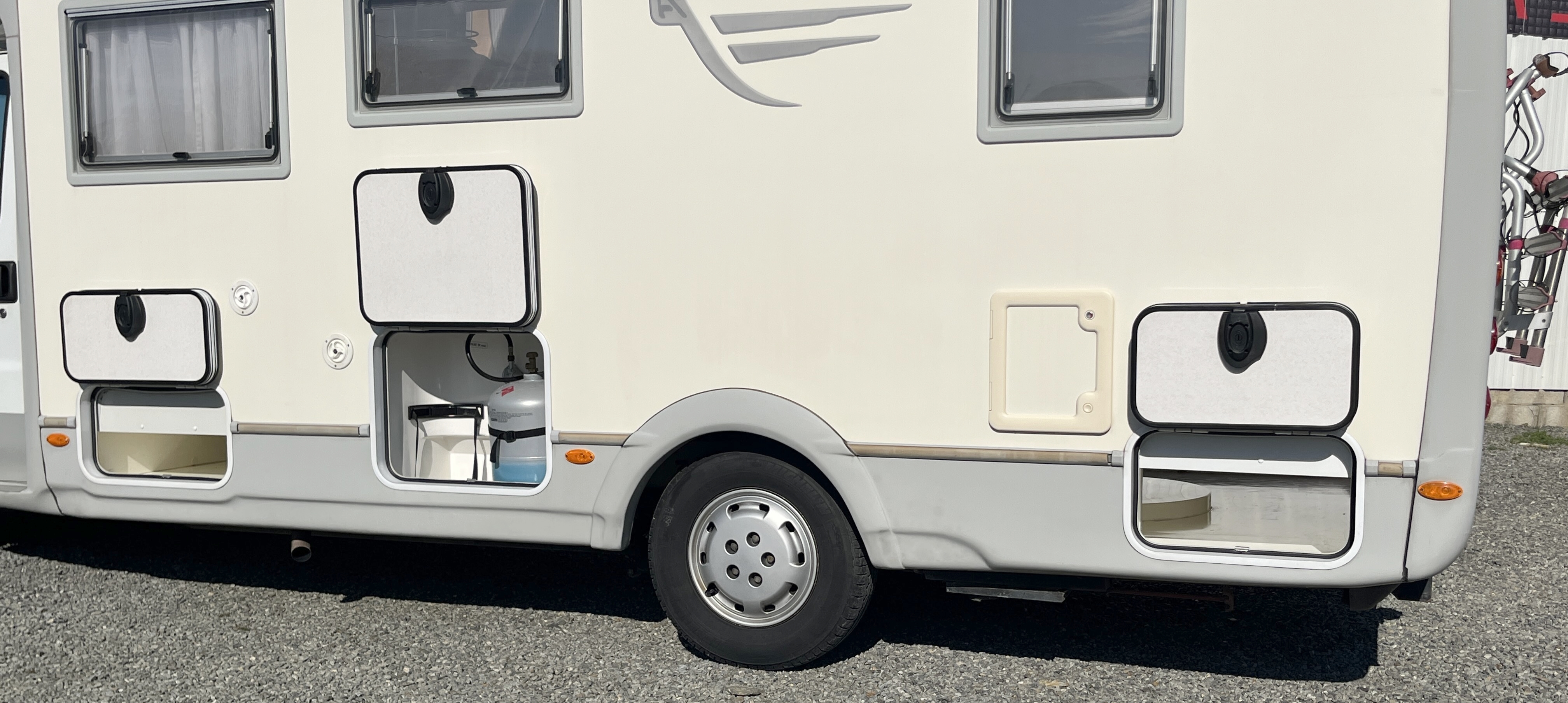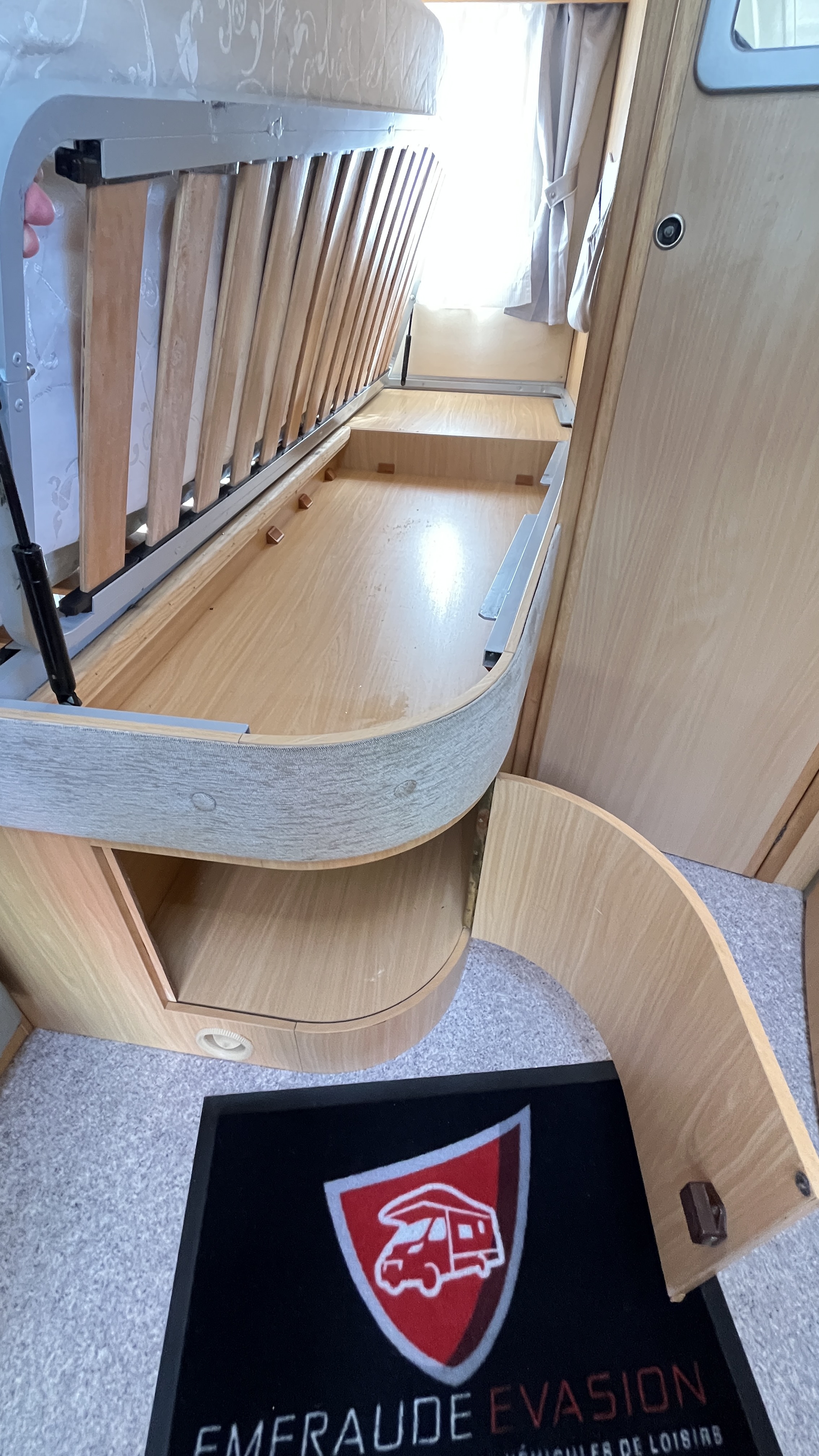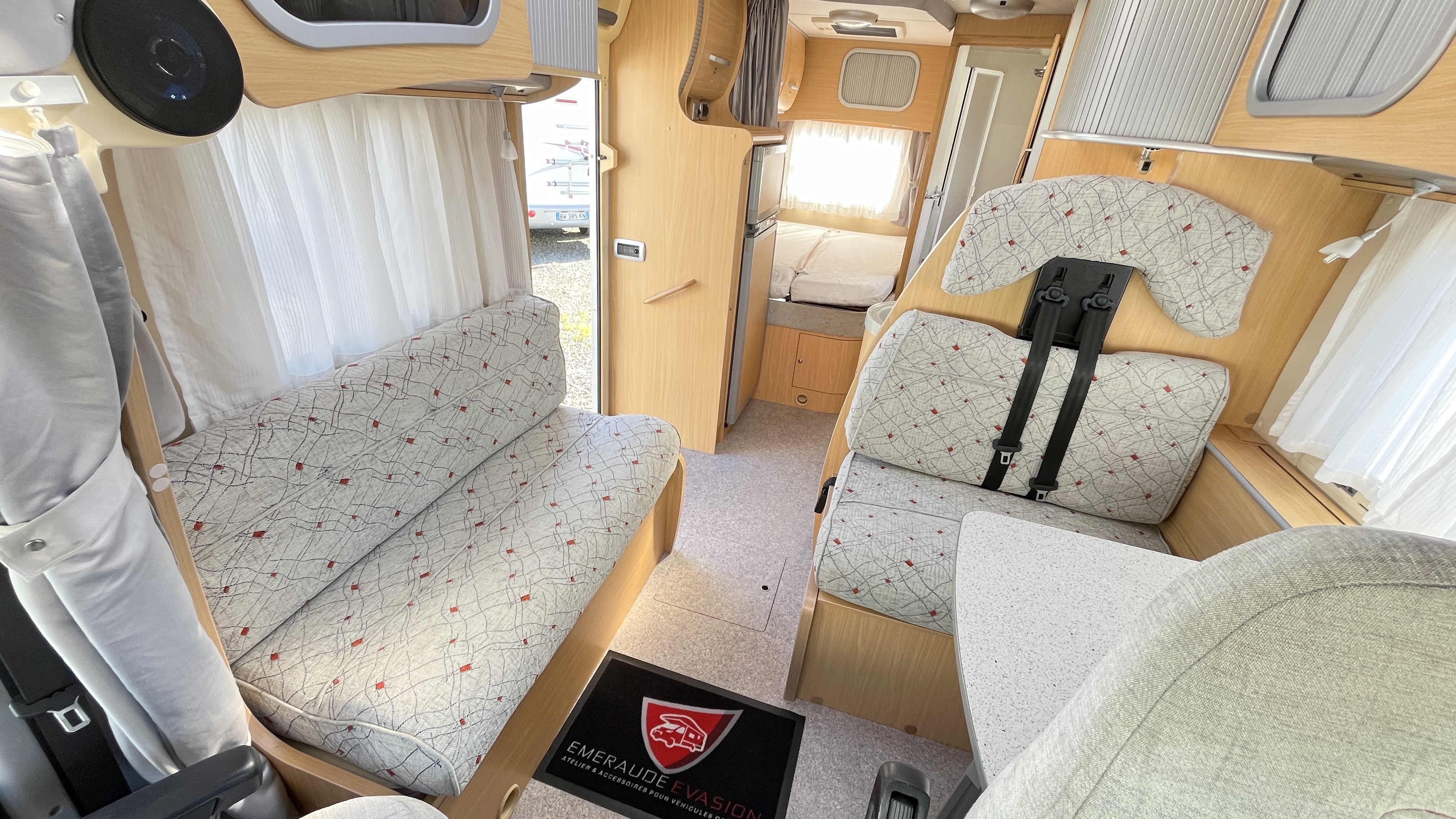 IntérieurRevêtement velours gris / Mobilier AulneFrigoAutomatiqueFrigoGrandFourRéseau teleType d'antenneSatellite manuelLit principalLit à la françaiseDimensions203 x 132 cmLit secondaireLit dinetteDimensions180 x 115 cmCombi chauffe-eau / chauffage gazDouble plancher