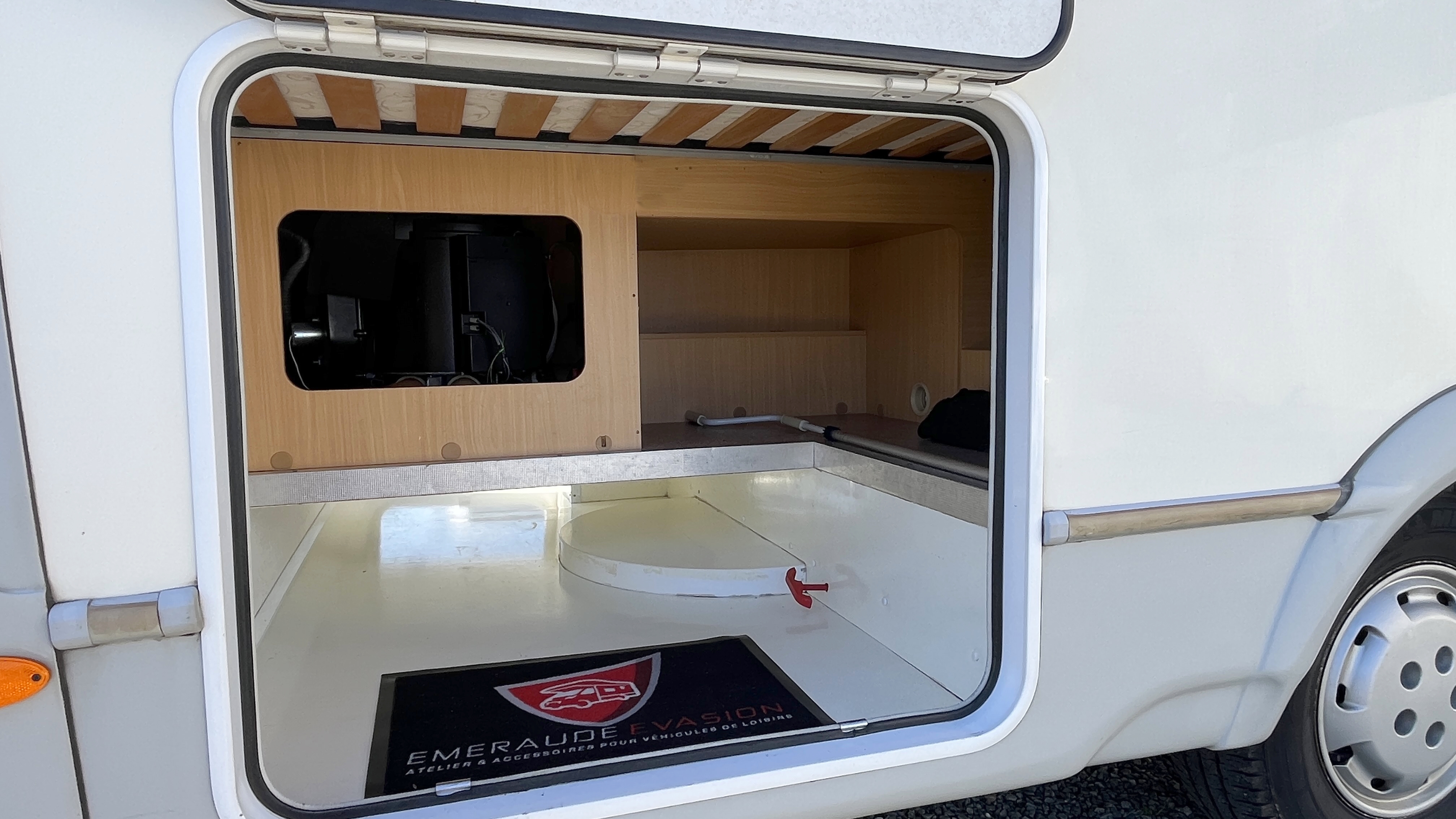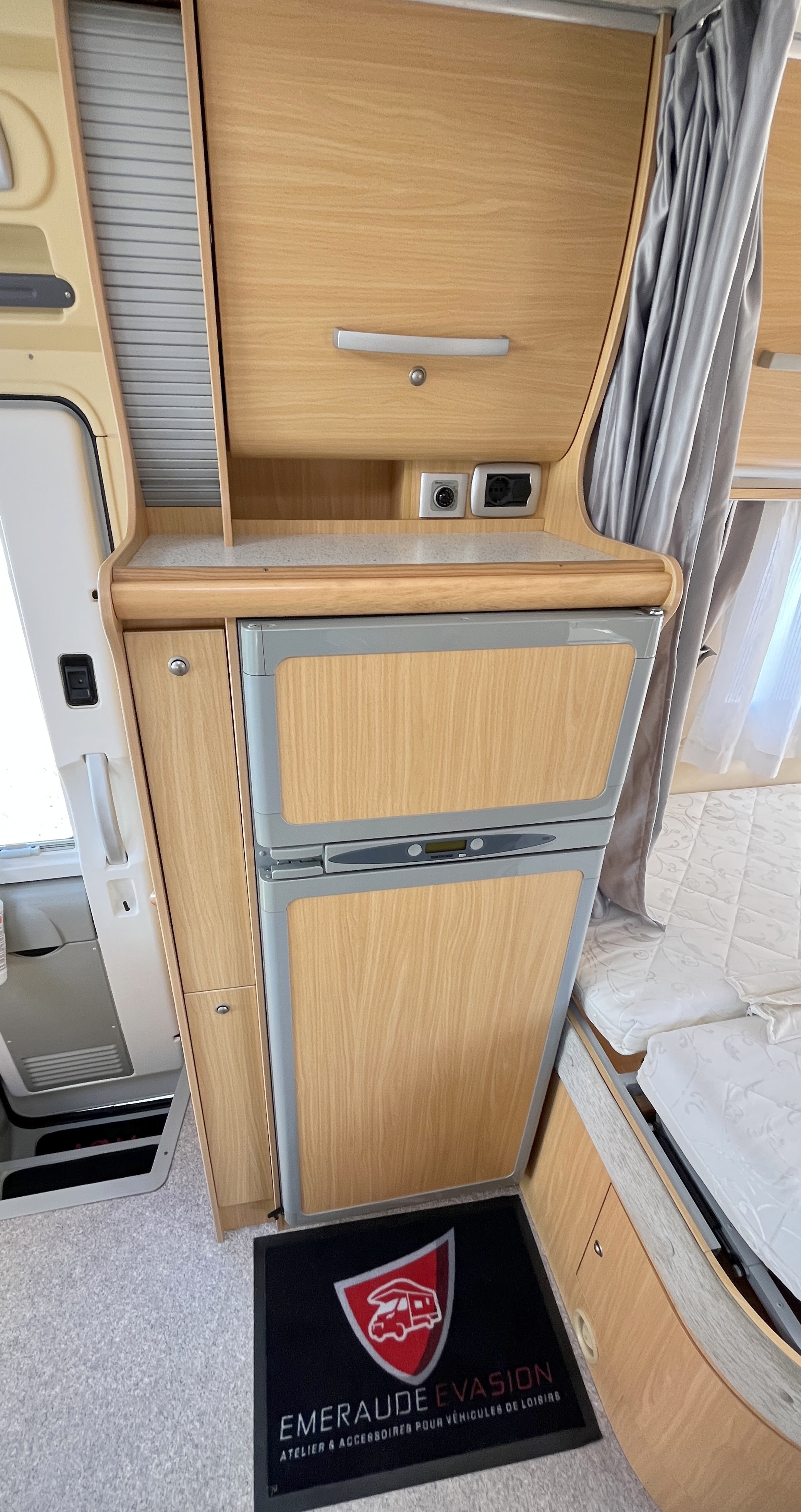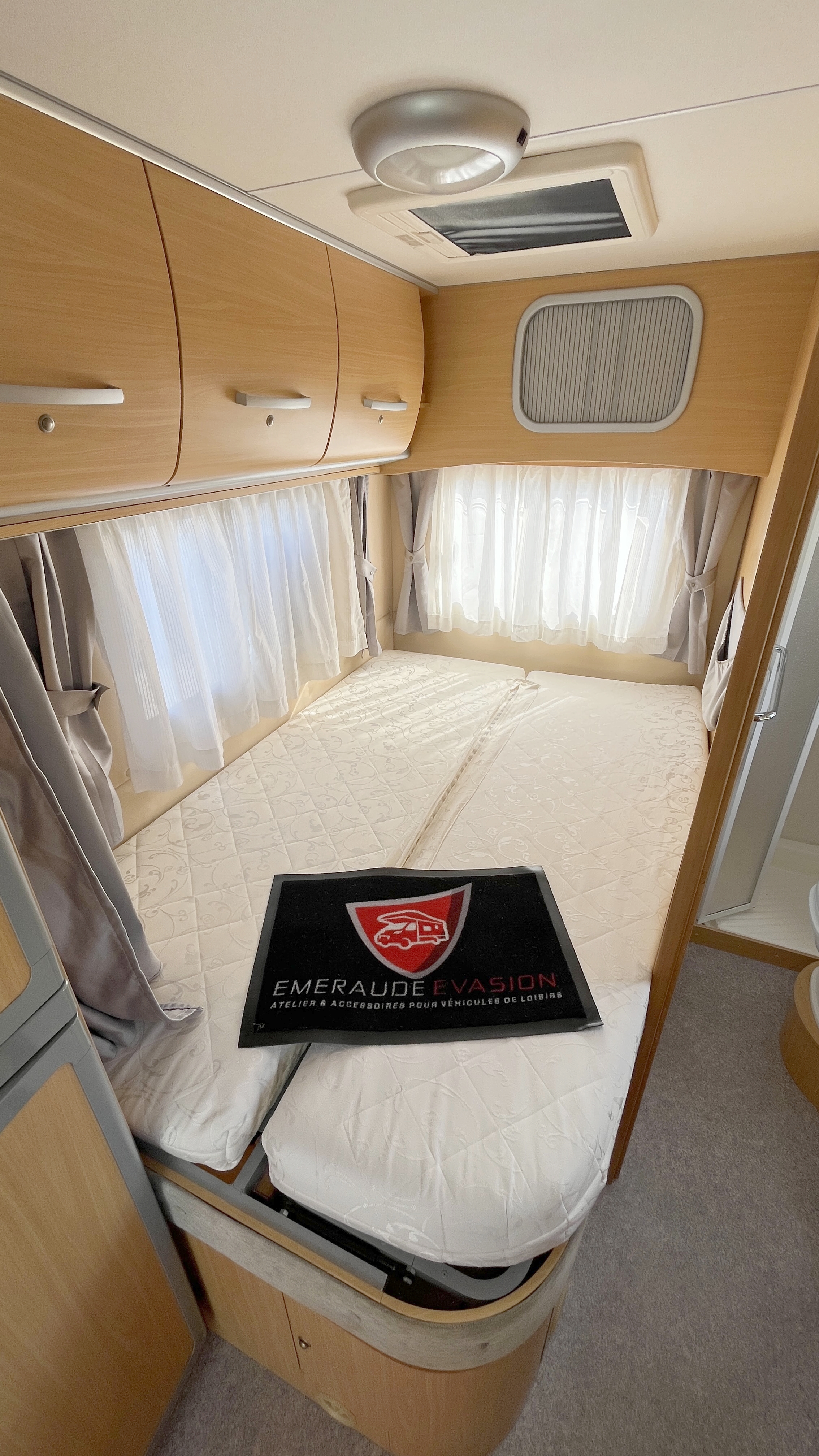 IntérieurRevêtement velours gris / Mobilier AulneFrigoAutomatiqueFrigoGrandFourRéseau teleType d'antenneSatellite manuelLit principalLit à la françaiseDimensions203 x 132 cmLit secondaireLit dinetteDimensions180 x 115 cmCombi chauffe-eau / chauffage gazDouble plancher