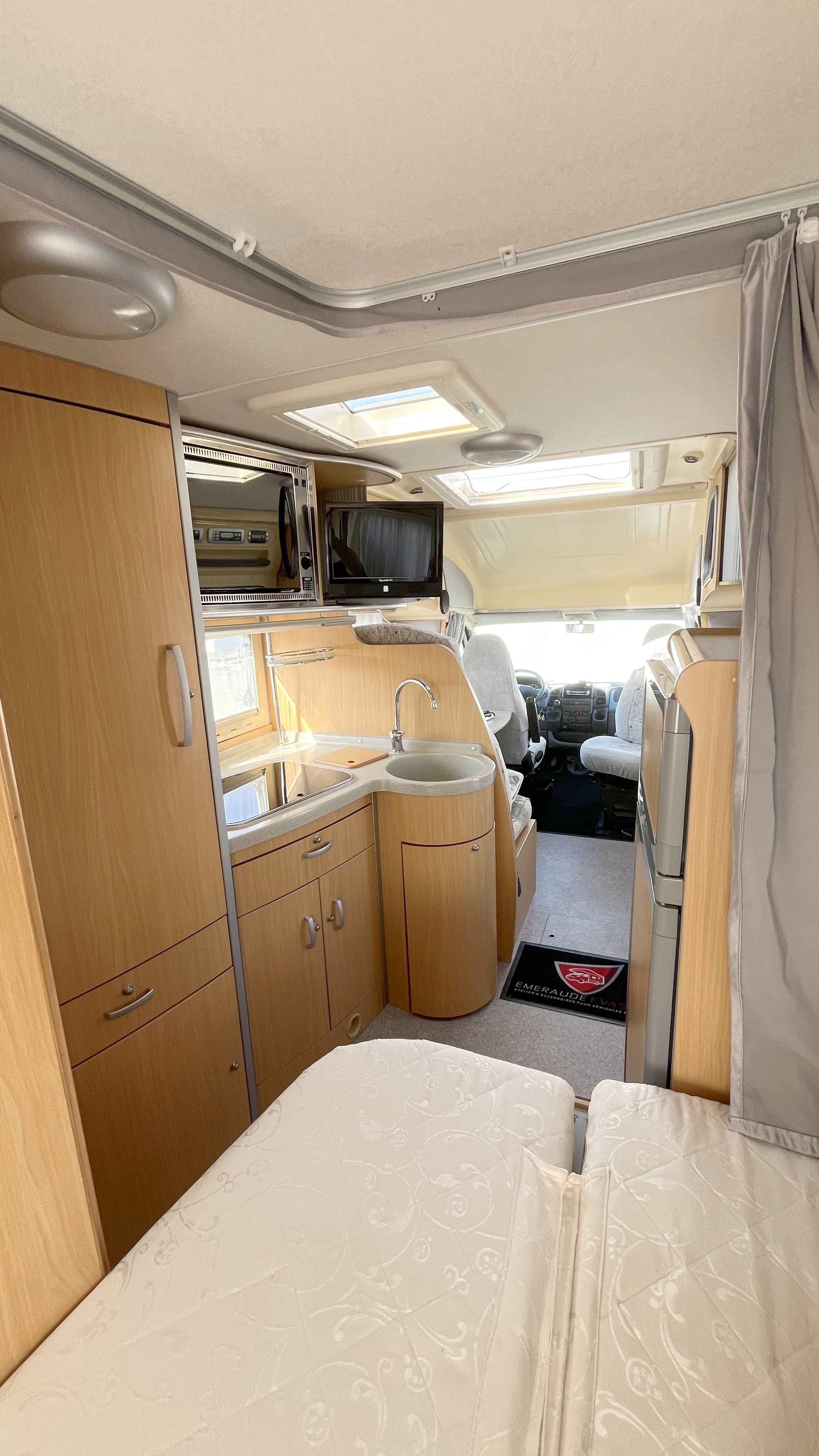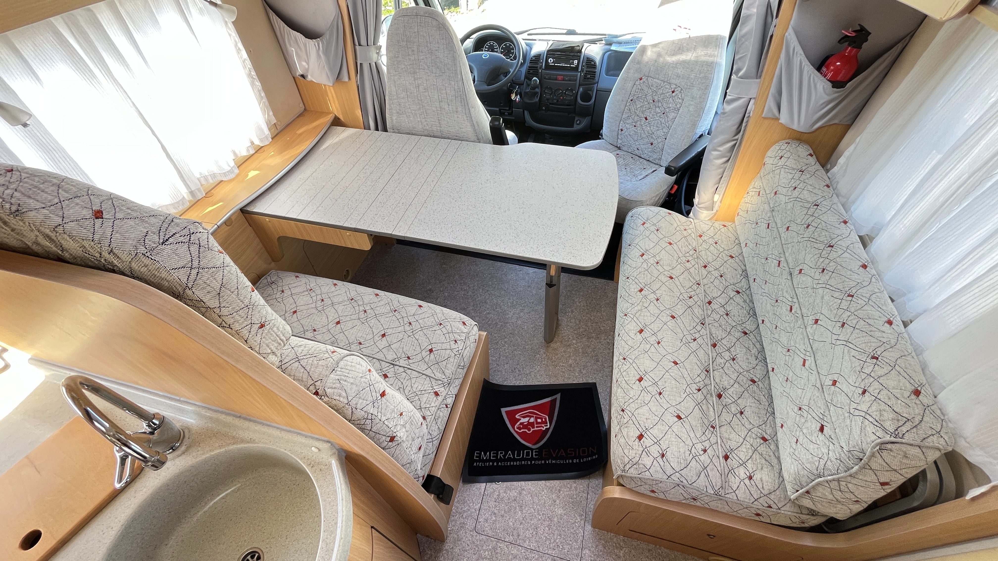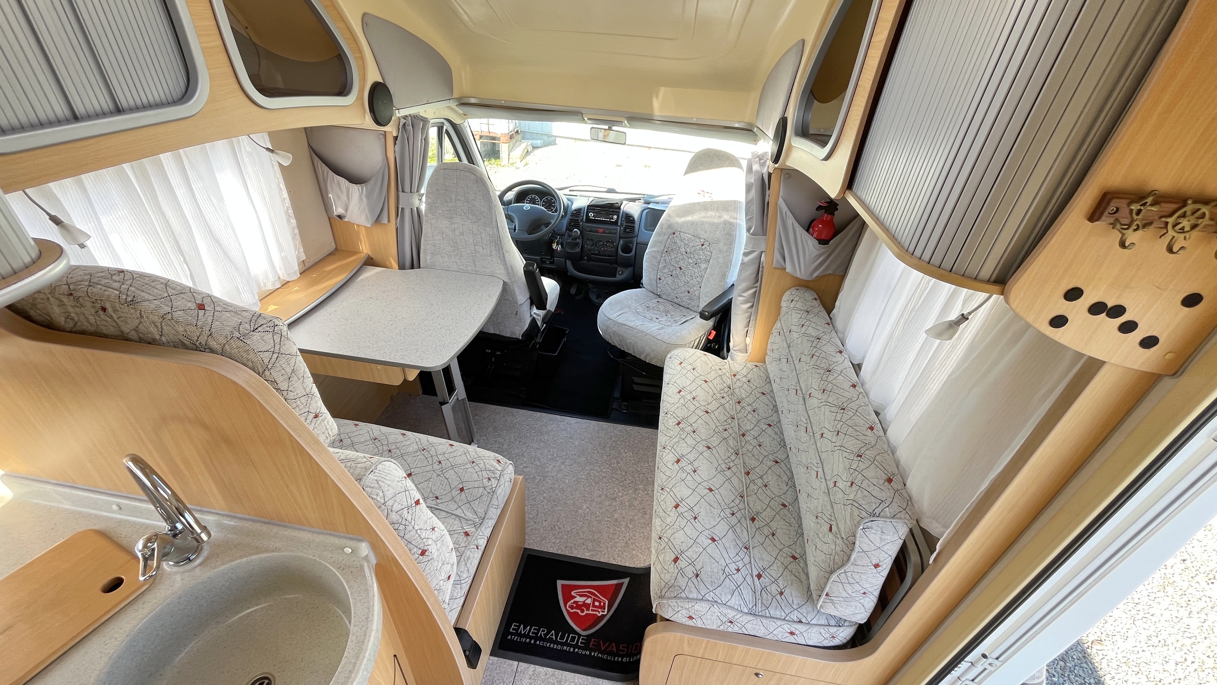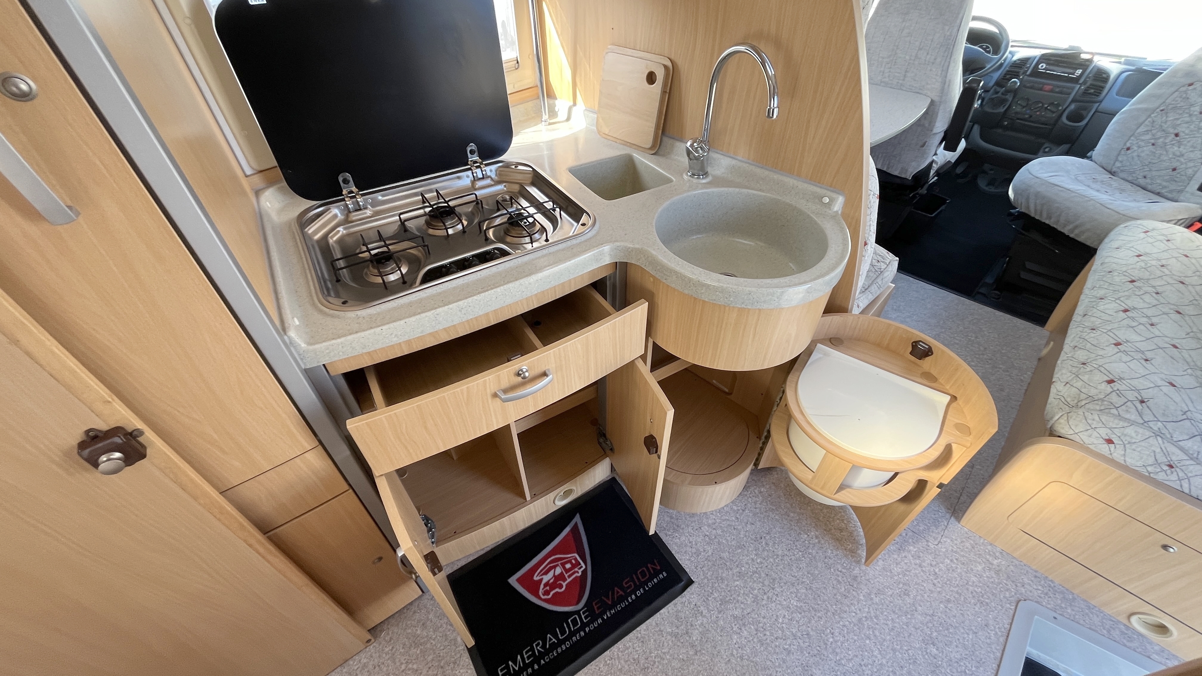 Couchage(s)4Motorisation2.8L JTD 127 Ch BVM5 - 9CVBoite de vitesseManuelleClimatisation cabineGrande souteEau propre / eau usee100 / 100 LImplantation_cuisineen "L"Douche toilette séparéPorte ou rideau séparation chambreSchéma