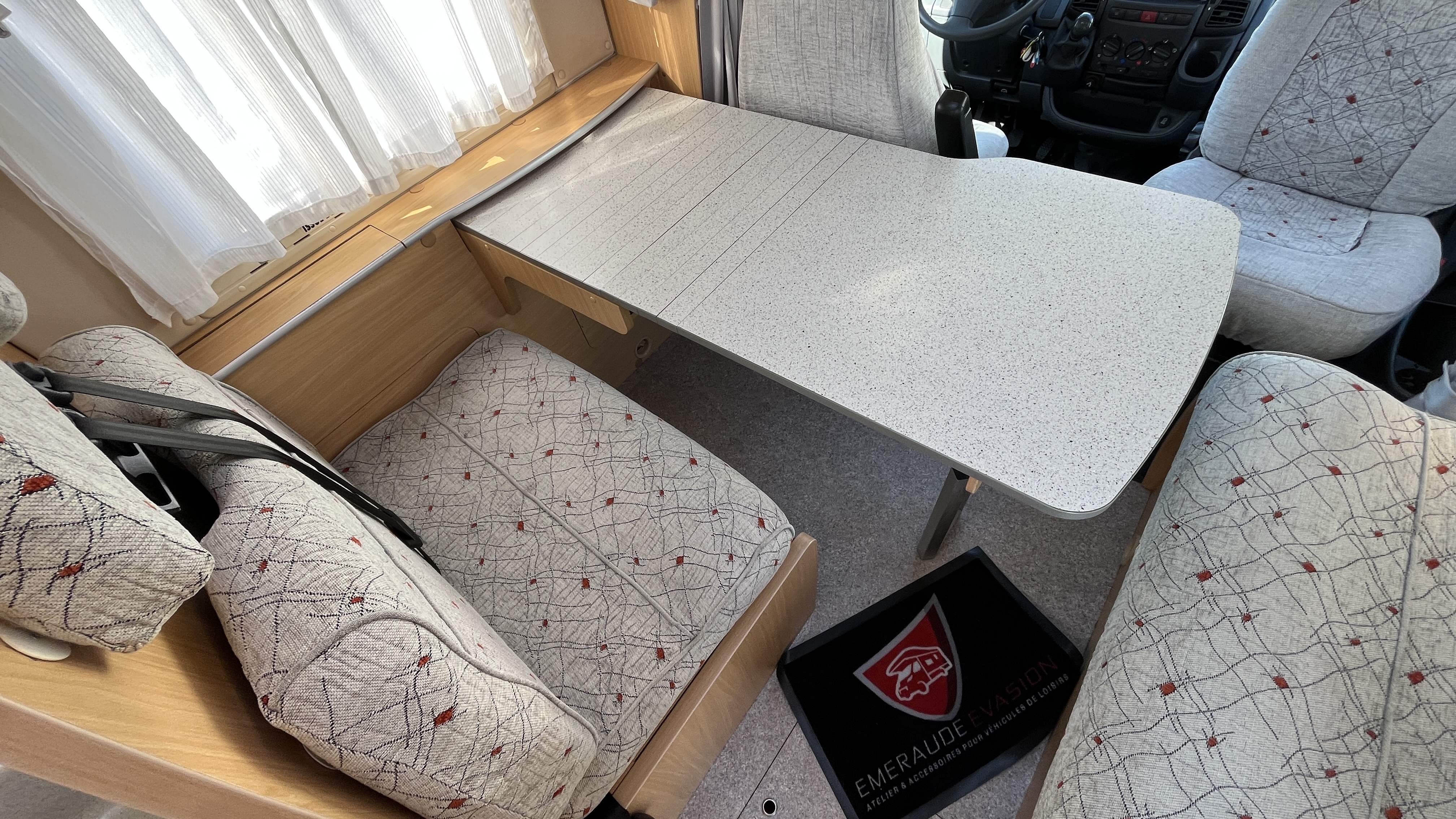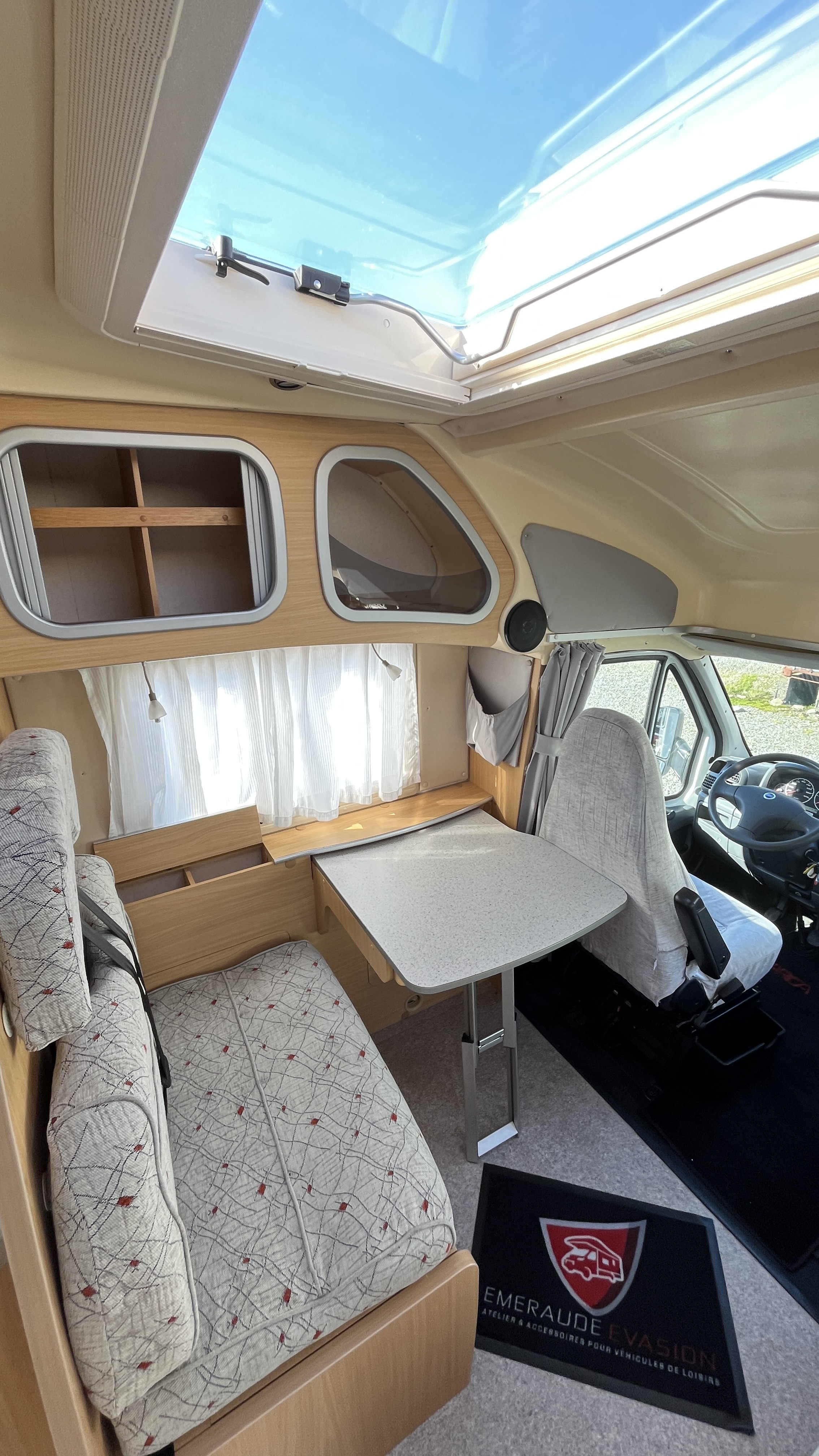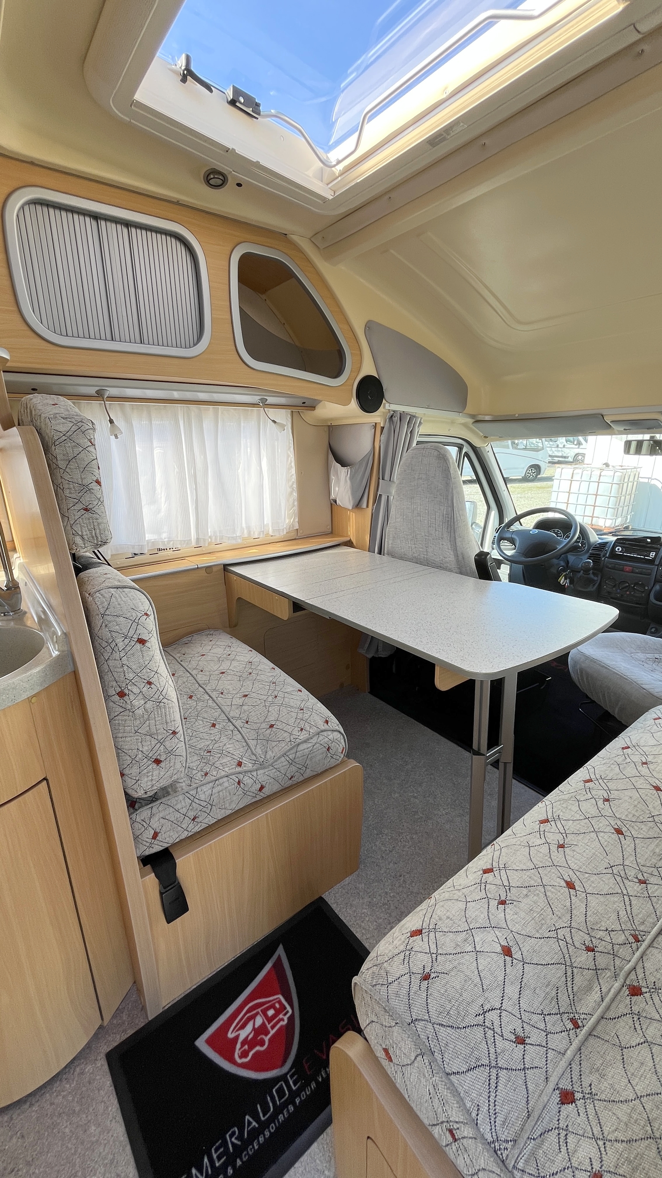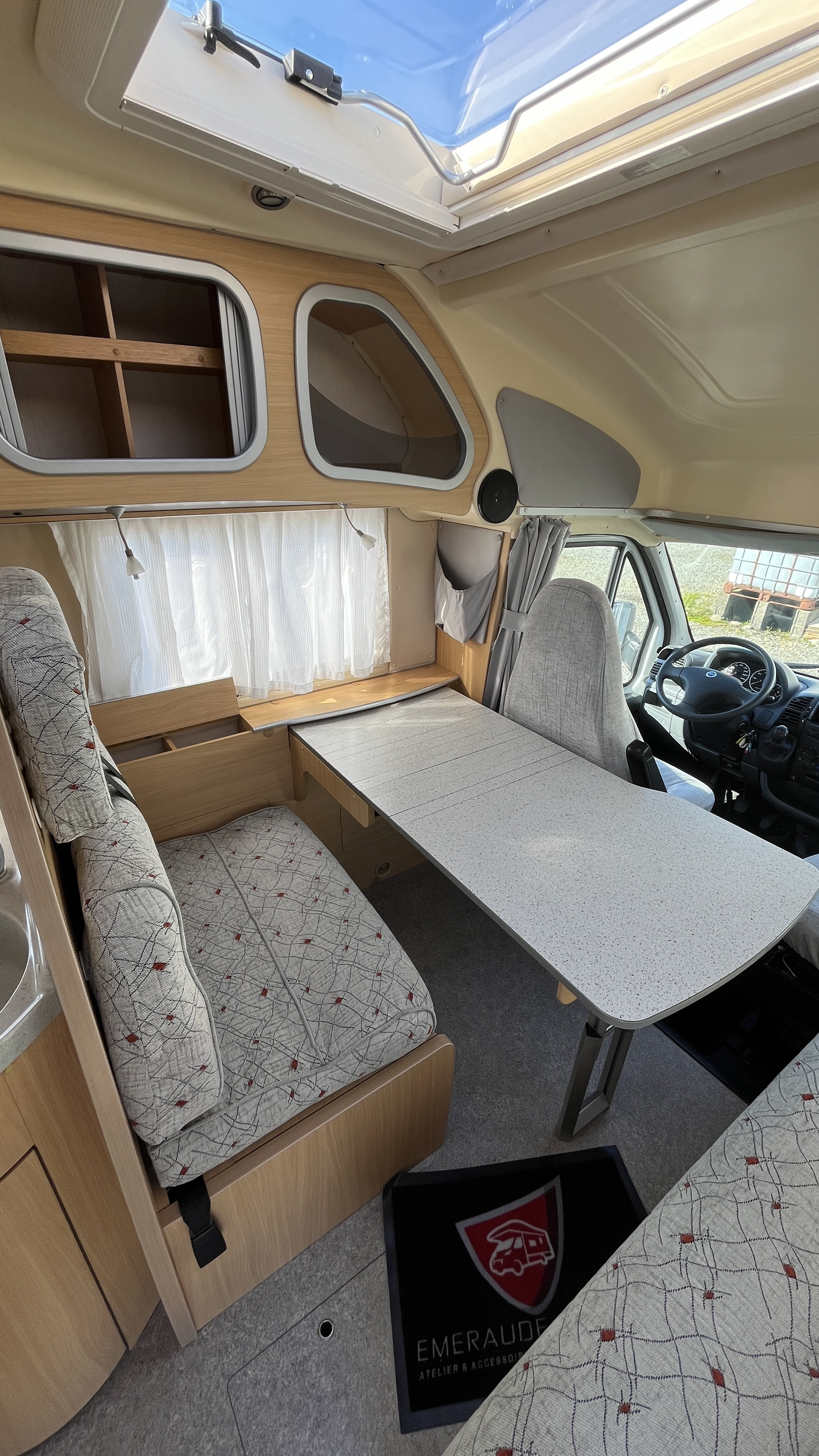 Avec 4 couchages confortables, un intérieur lumineux aux tissus et mobiliers clairs, et une implantation bien pensée, ce camping-car est idéal pour profiter pleinement de vos escapades.
