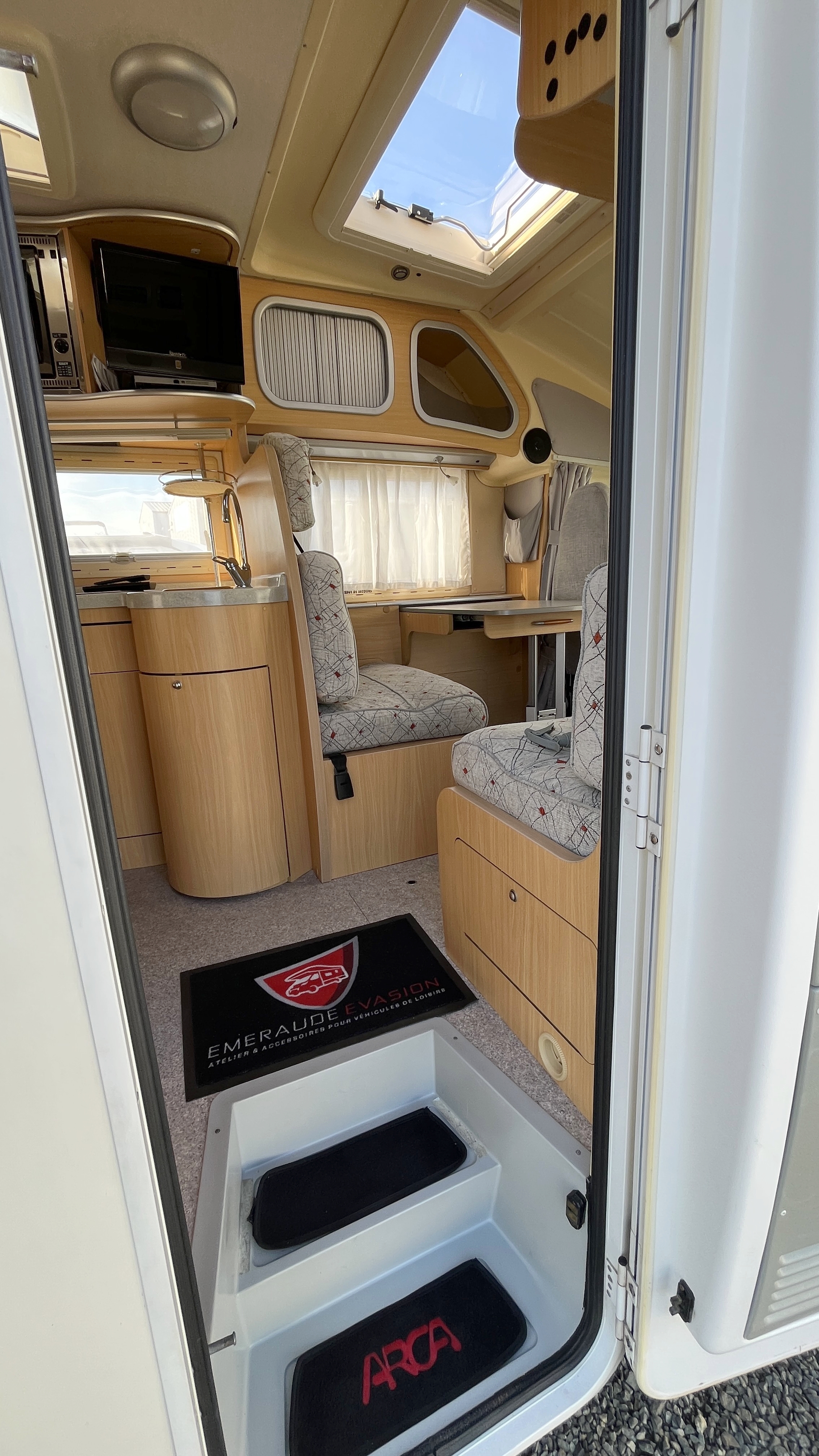 Depuis plus de 60 ans, Arca se distingue par ses véhicules haut de gamme, mêlant matériaux performants, construction robuste et soin artisanal apporté aux finitions. Ce modèle bénéficie également des nombreux atouts du châssis AL-KO : limitation du poids, abaissement du centre de gravité, voies arrière élargies, au profit du confort de conduite supérieur, d’un double plancher isolé pour protéger les réservoirs et éléments techniques, ainsi que de nombreux rangements traversants supplémentaires.