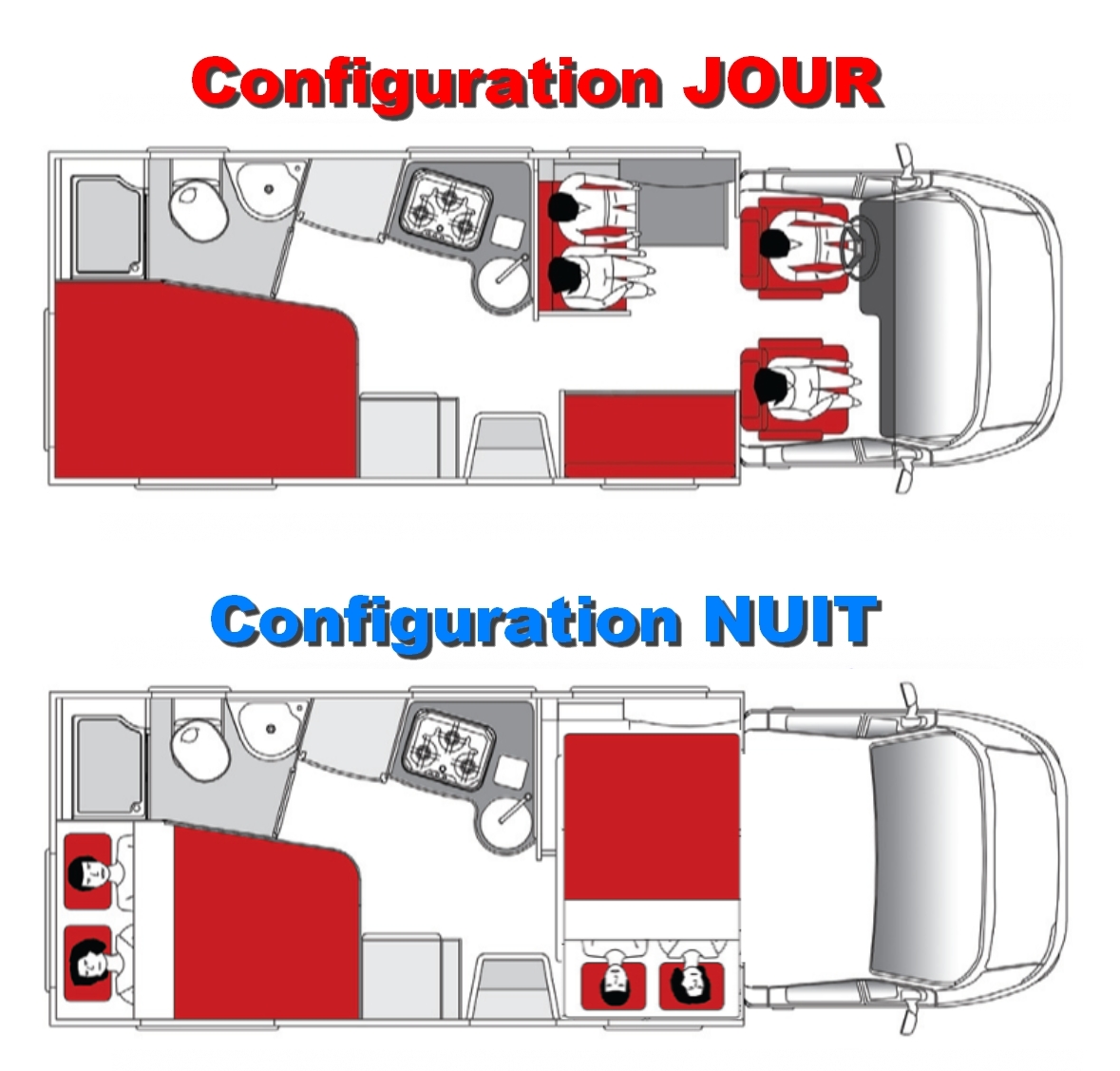 Le véhicule propose 4 couchages équipés de sommiers à lattes :