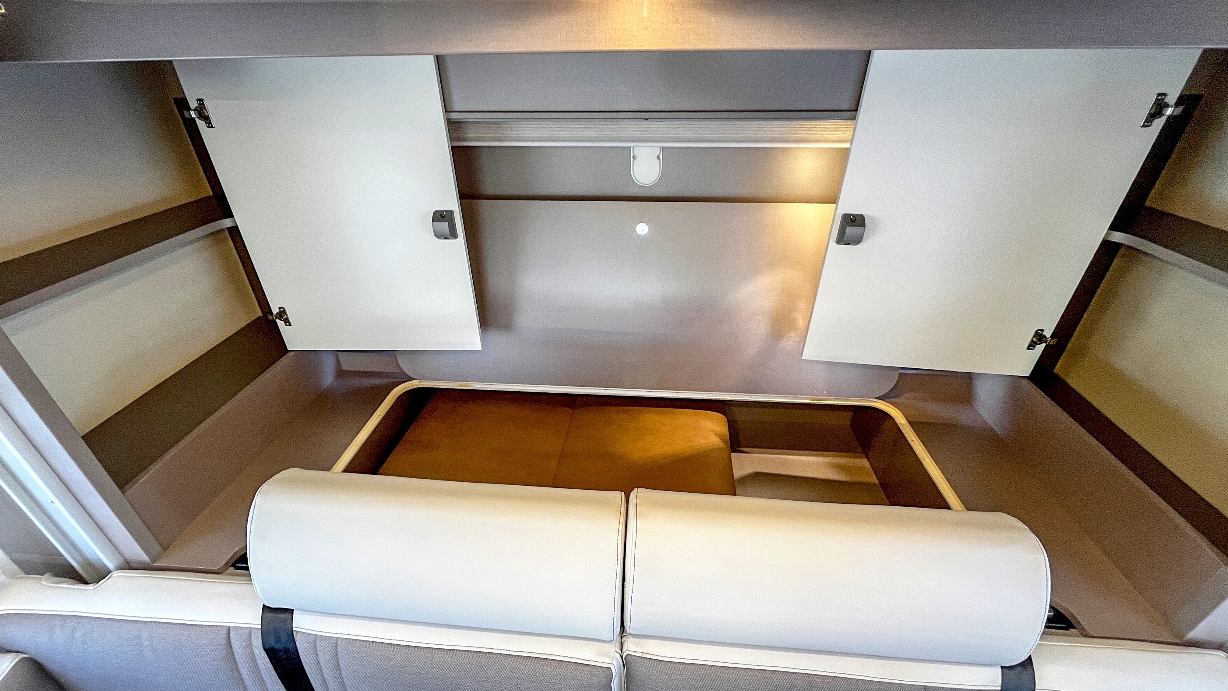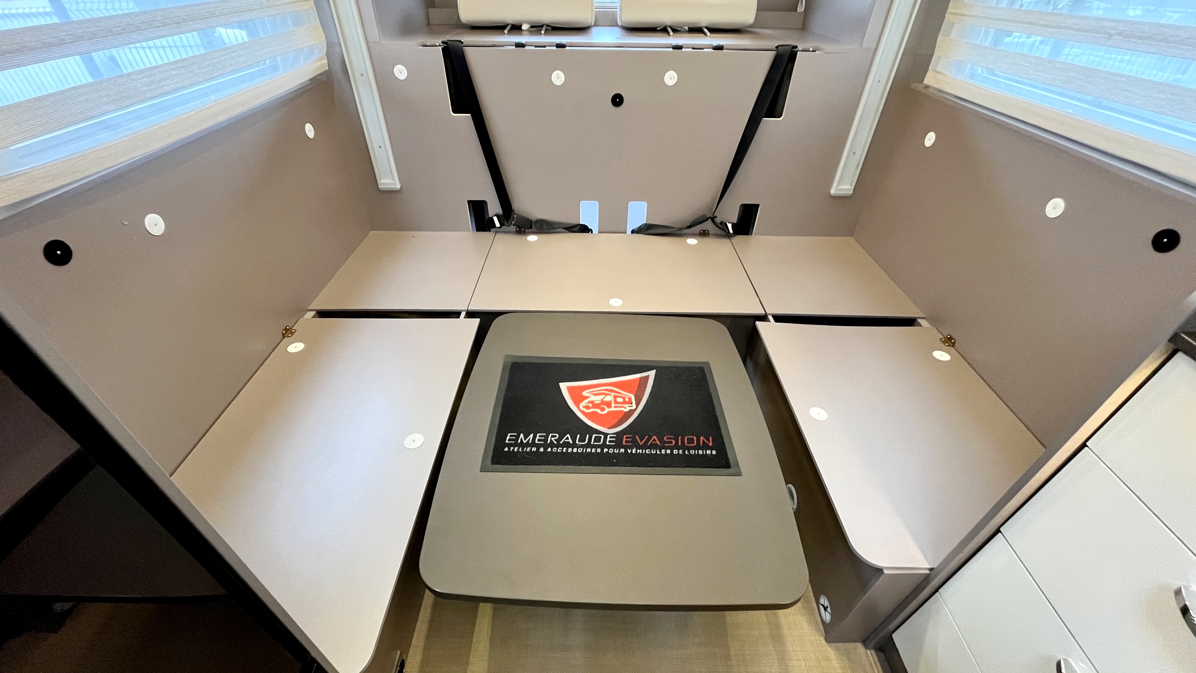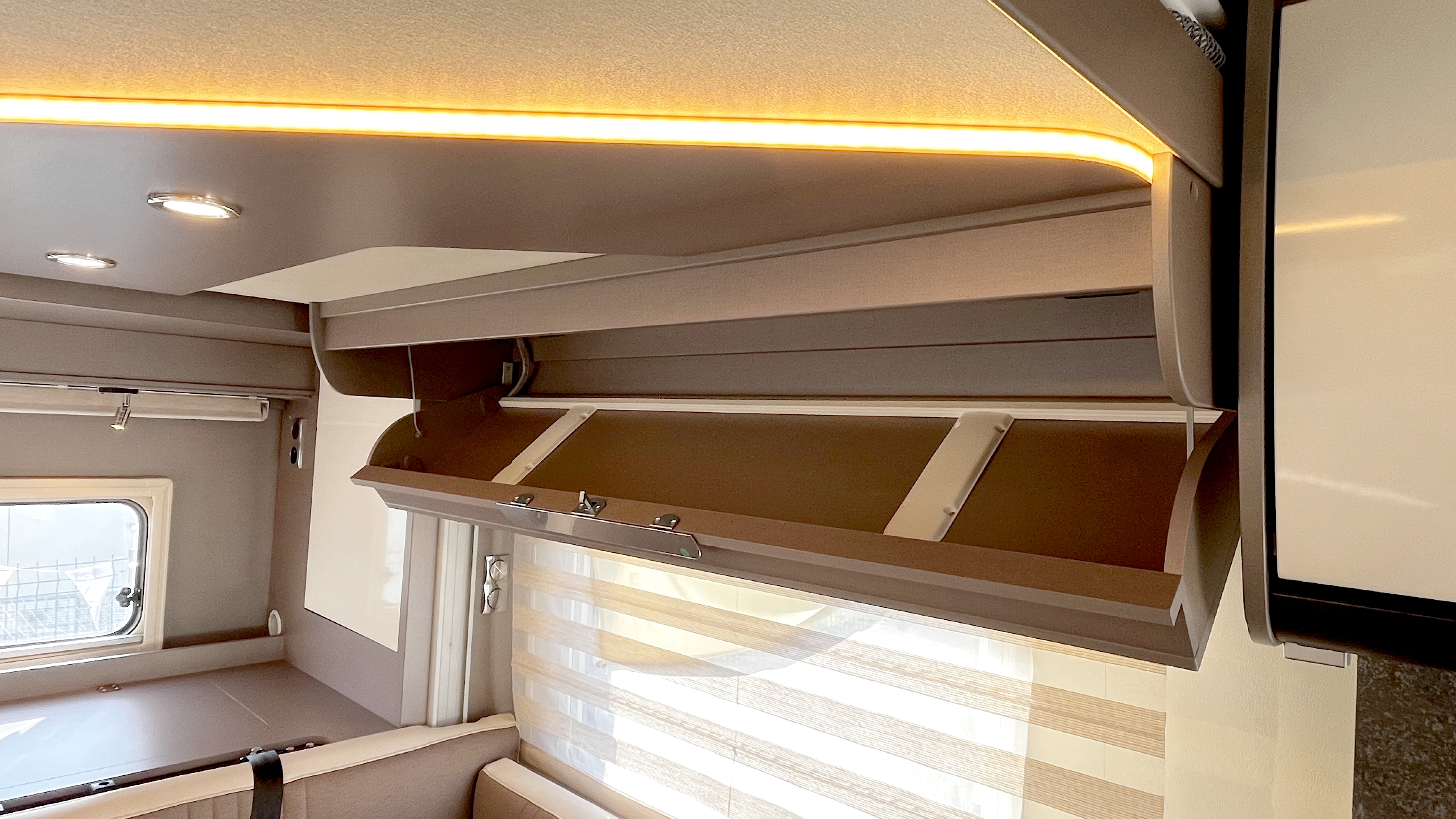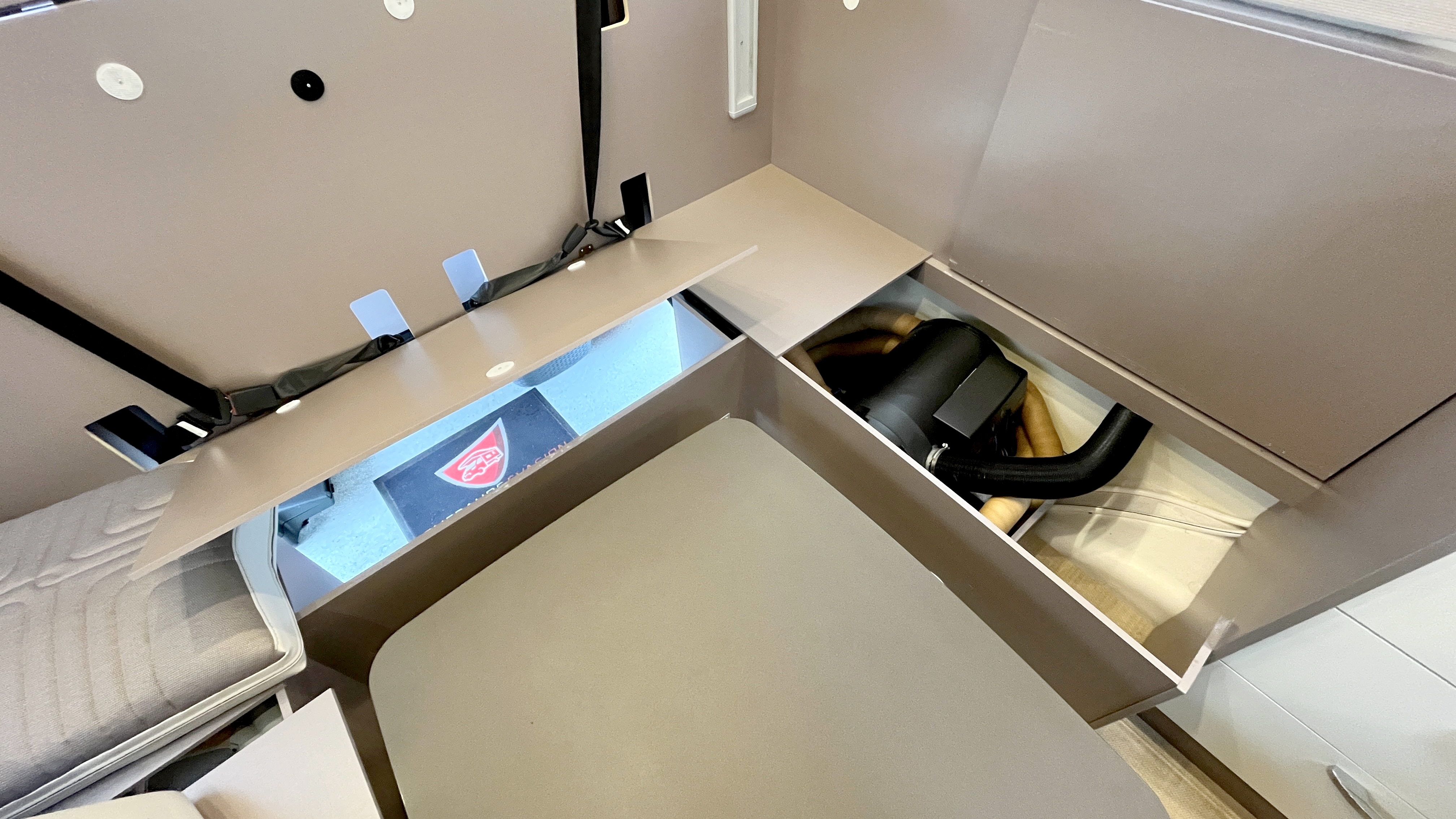 Le double plancher technique isolé, chauffé et continu est un allié de choix : la combinaison du sous-plancher et du plancher continu avec un espace intermédiaire assure une isolation optimale pour un climat intérieur toujours agréable, que vous passiez vos vacances dans des endroits chauds ou froids. Ce système profite également aux installations dans le camping-car. En effet, les conduites, les tuyaux, les réservoirs d’eau et autres se trouvant dans le plancher intermédiaire, ils sont ainsi protégés du gel. Autre avantage : ce double plancher de plain-pied couvre tout le véhicule sans aucune marche.
