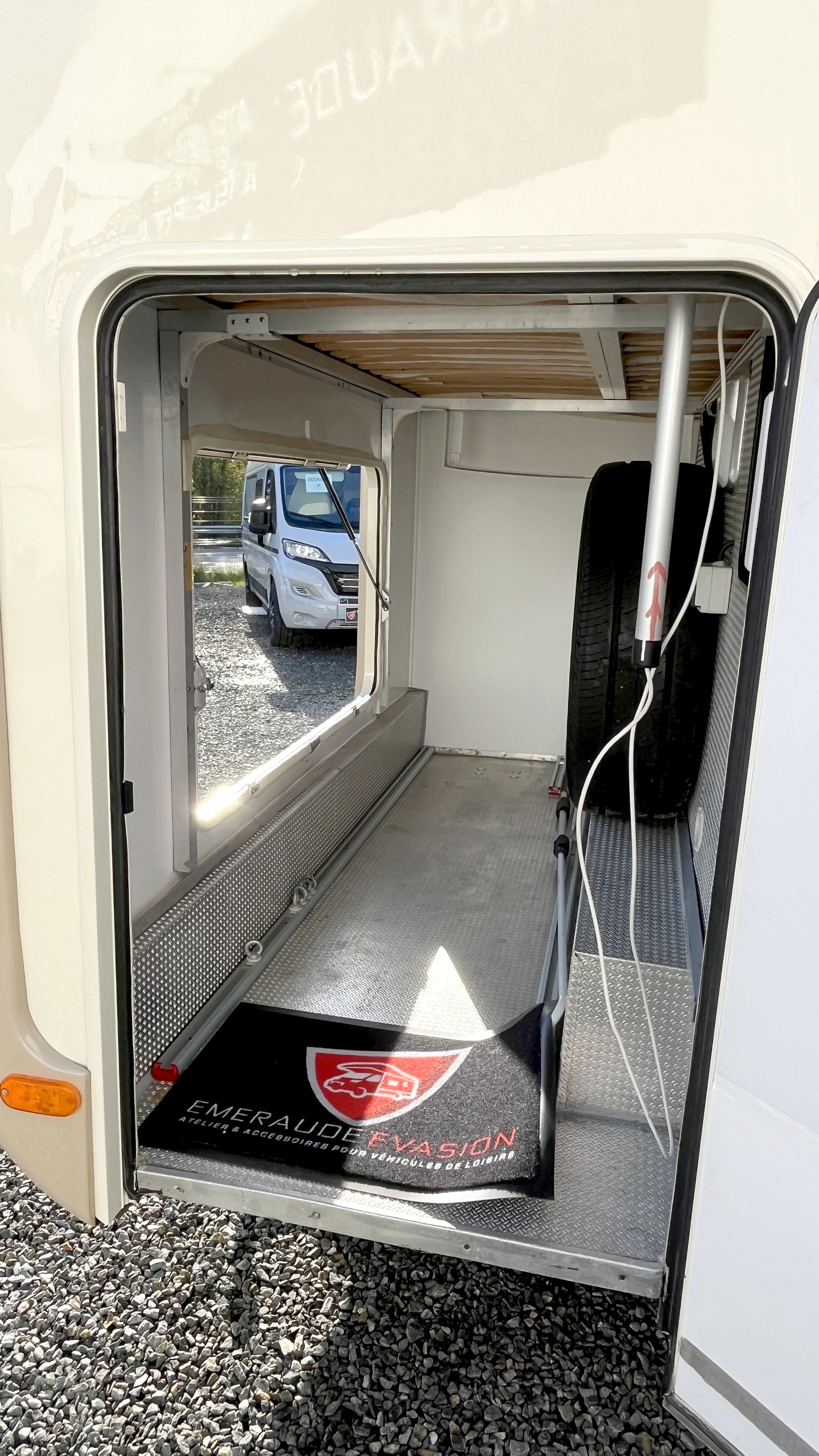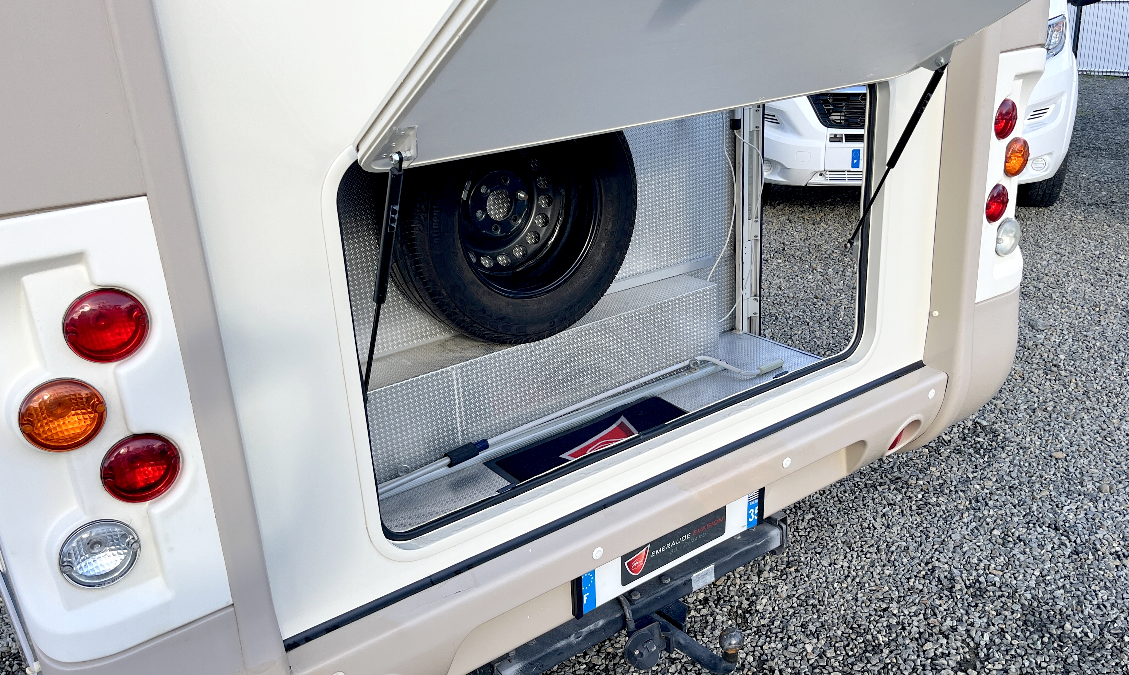 Sa large soute à double accès, intégralement protégée par un revêtement aluminium, permettra l'emport de vélo et est complétée par des rangements de bas de caisse.