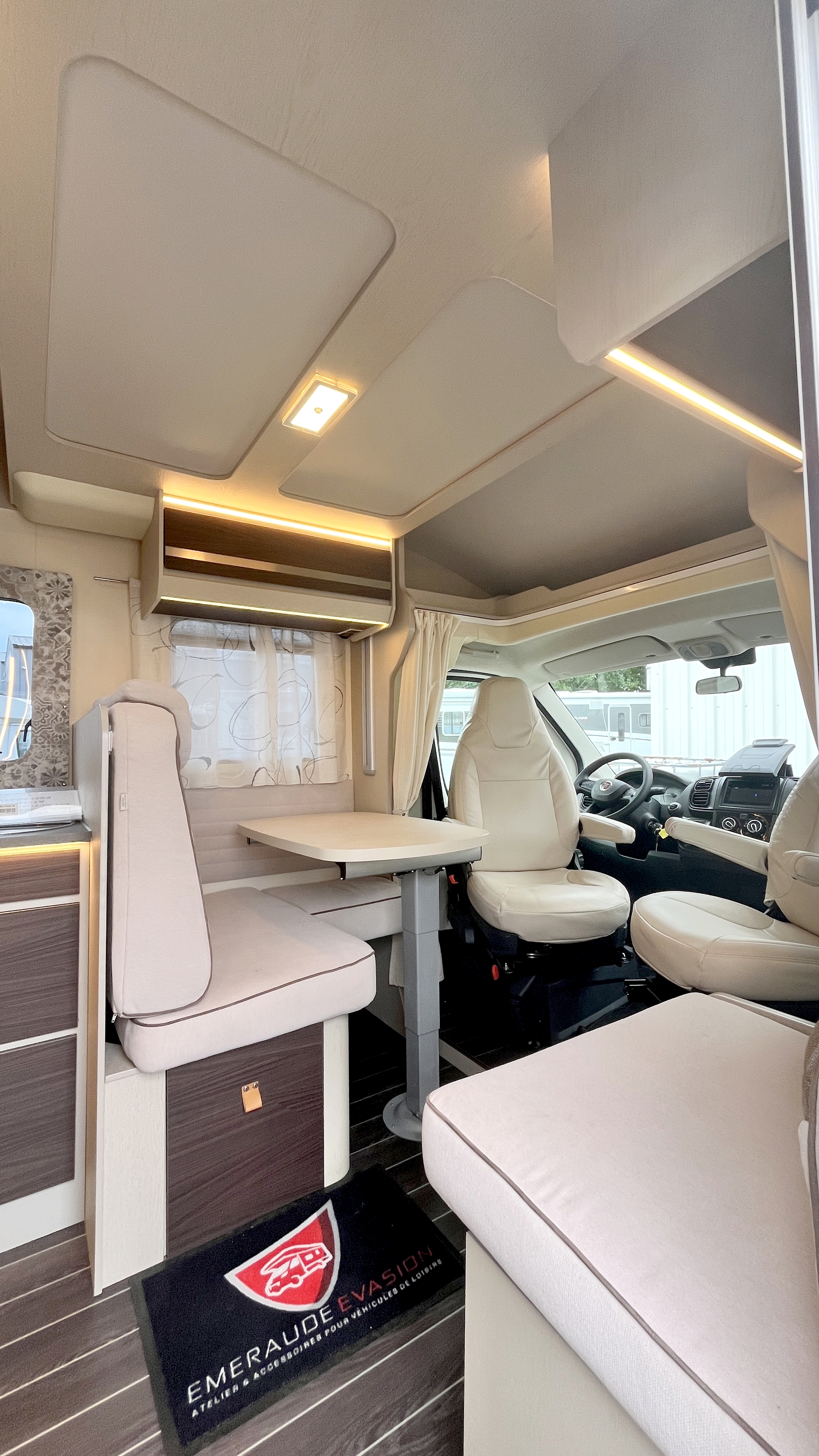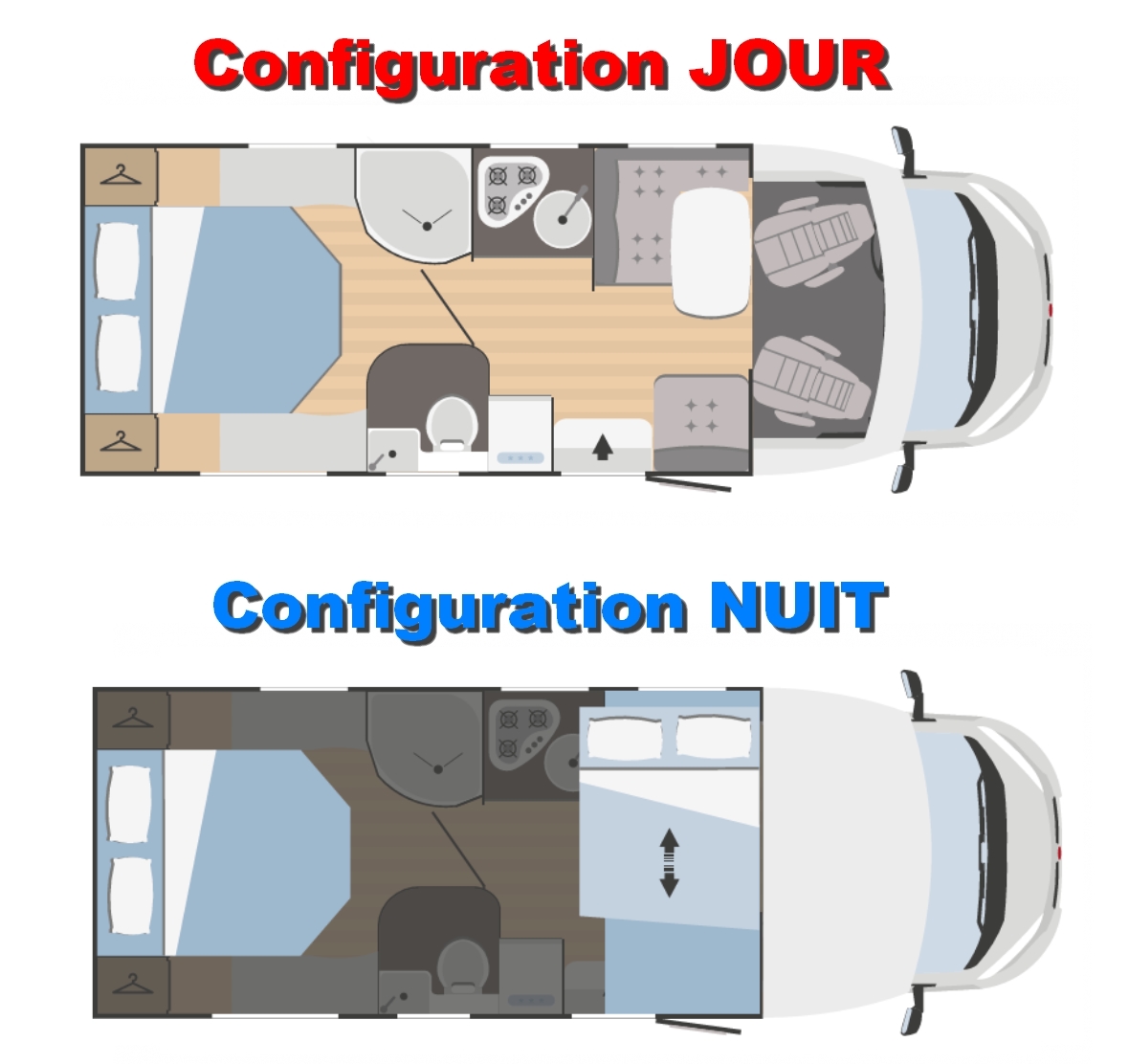 Couchage(s)5Motorisation2.2 L MultiJet3 140 ch - 7cvBoite de vitesseManuelleClimatisation cabineGrande souteEau propre / eau usee100 / 100 LImplantation_cuisineDroiteDouche toilette séparéPorte ou rideau séparation chambreSchéma -
