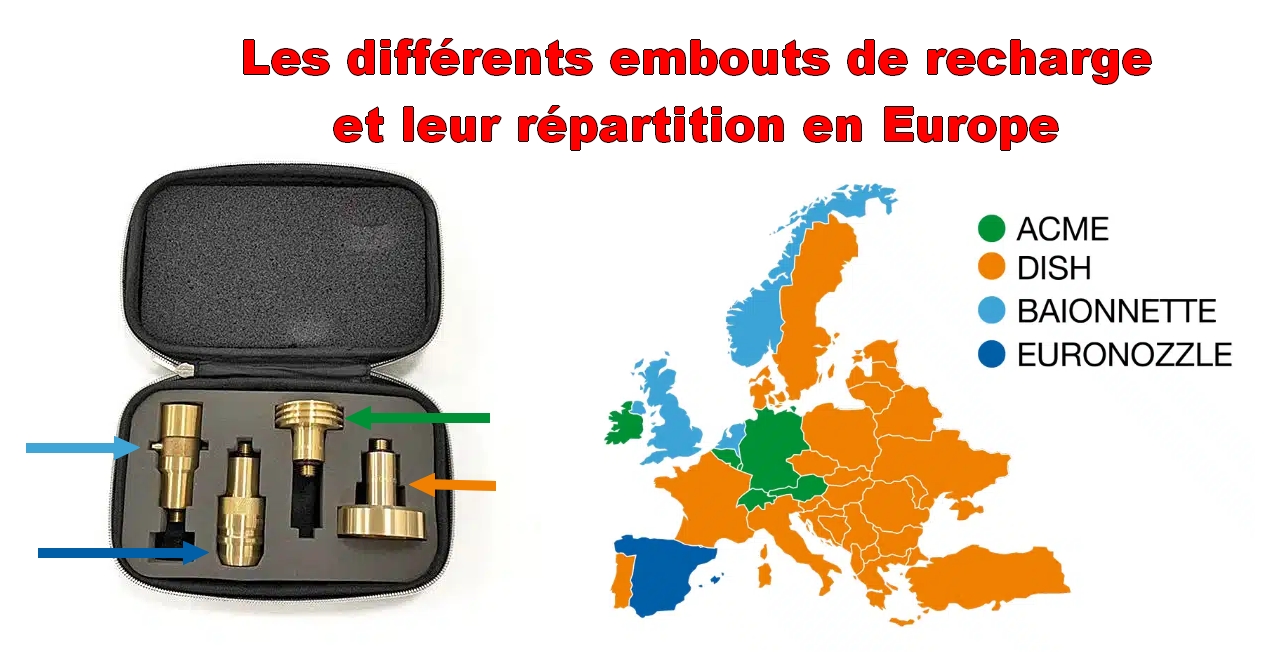 Ils portent l'appellation ACME, à Baïonnette, EuroNozzle ou DISH (modèle standard français)