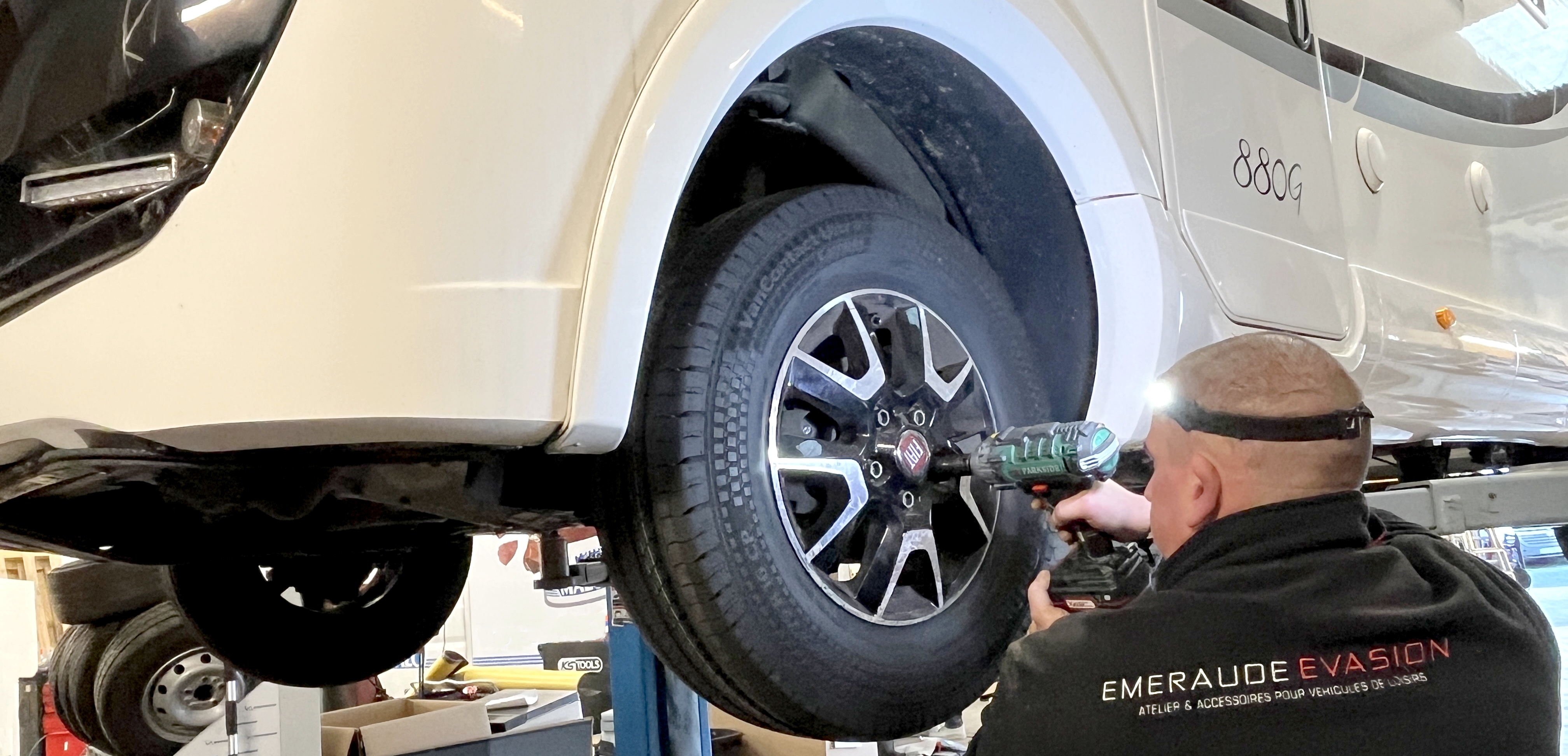L’atelier intégré au concept Emeraude Evasion en fait beaucoup plus qu’un concessionnaire de camping-cars : Entretien courant, interventions mécaniques, réparations diverses, travaux de carrosserie ou de peinture, pose des accessoires… Emeraude Evasion est aussi le « garagiste » de votre camping-car, pour petits et gros « bobos ». Parce que nous sommes agréés par les plus grandes compagnies d’assurance, nos techniciens s’occupent également, au besoin, de la gestion de votre sinistre avec l’expert.